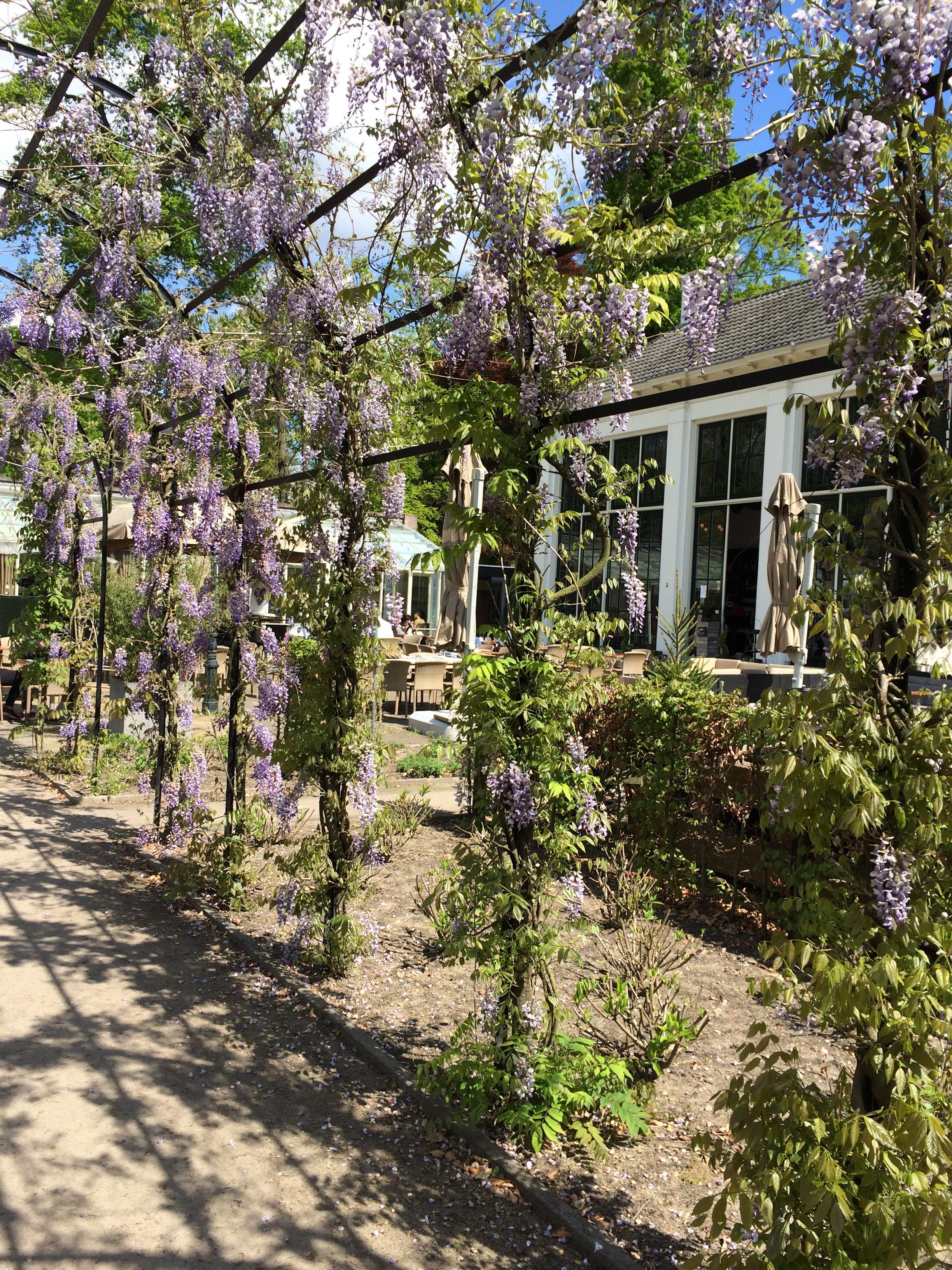 Maar de wegen scheiden zich wel. De oude modellen hebben hun eigen route en wij nieuwelingen moeten op eigen kracht, met veel minder in aantal de toer maken. Maar de schoonheid van de route en het prachtige gezicht van de dertien dartele auto’s maken het dat we genieten. Startpunt is Harderwijk, bekend om het Dolfinarium en het prachtige oude centrum. Zeker de moeite waard om op een later tijdstip de stad verder te verkennen. De eerste stop is bij kasteel De Essenburgh in Hierden. Je moet wel goed opletten want voor je het weet ben je het rijksmonument uit de dertiende eeuw voorbij gereden. Het is een foto waard, maar lang zijn we er niet gebleven. Het is te vroeg voor koffie, alsof dat kan, de bestemming voor de koffie wordt Staverden. Via b-wegen achter Nunspeet, de kijktuin slaan we over, rijden we in colonne door een landelijk tafereel. Je kunt altijd nog uitstappen bij de uitkijktoren van Nunspeet, maar ook dat laten we aan ons voorbij gaan. We genieten gewoon wat langs ons oog komt. De tocht voert ons langs Vierhouten, door de bossen en langs de heide dat nog niet in bloei staat maar ons zeker aan het eind van de zomer terug doet komen, via Elspeet bij de koffiebestemming landgoed Staverden. De boog van blauwe regen geeft een gepast welkom en de walnoot-honing taart en de cappuccino smaakt ons goed. De pauze is kort want er ligt nog een prachtig deel van de oostelijke Veluwe op ons te wachten. De boerderijen staan er statig bij, het hooi wordt overdekt door een houten kap, dat zie je niet zoveel meer. De Veluwse Boerderij heeft een nogal bewogen geschiedenis. De originele en traditioneel gebouwde zijn alleen nog diep in de Veluwse bossen te vinden. De boskavels in de 18e eeuw waren klein en de Veluwse boeren hadden geen grote schuren nodig voor hun vee. Zelf woonden ze in een laag, één verdieping hoge woning onder een rieten dakkap. In deze woningen leefden met gemak een gezin met vier kinderen. Later in de tweede wereld oorlog deden de Veluwse Boerderijen dienst als onderduikadres. Onze laatste stop is bij kasteel de Vanenburg bij Putten. Een prachtige trouwlocatie. We konden de bruid in vol ornaat bewonderen, maar voor ons geen borrel. Het bruidspaar beschikte over alle ruimte dus voor gewone bezoekers geen plaats.