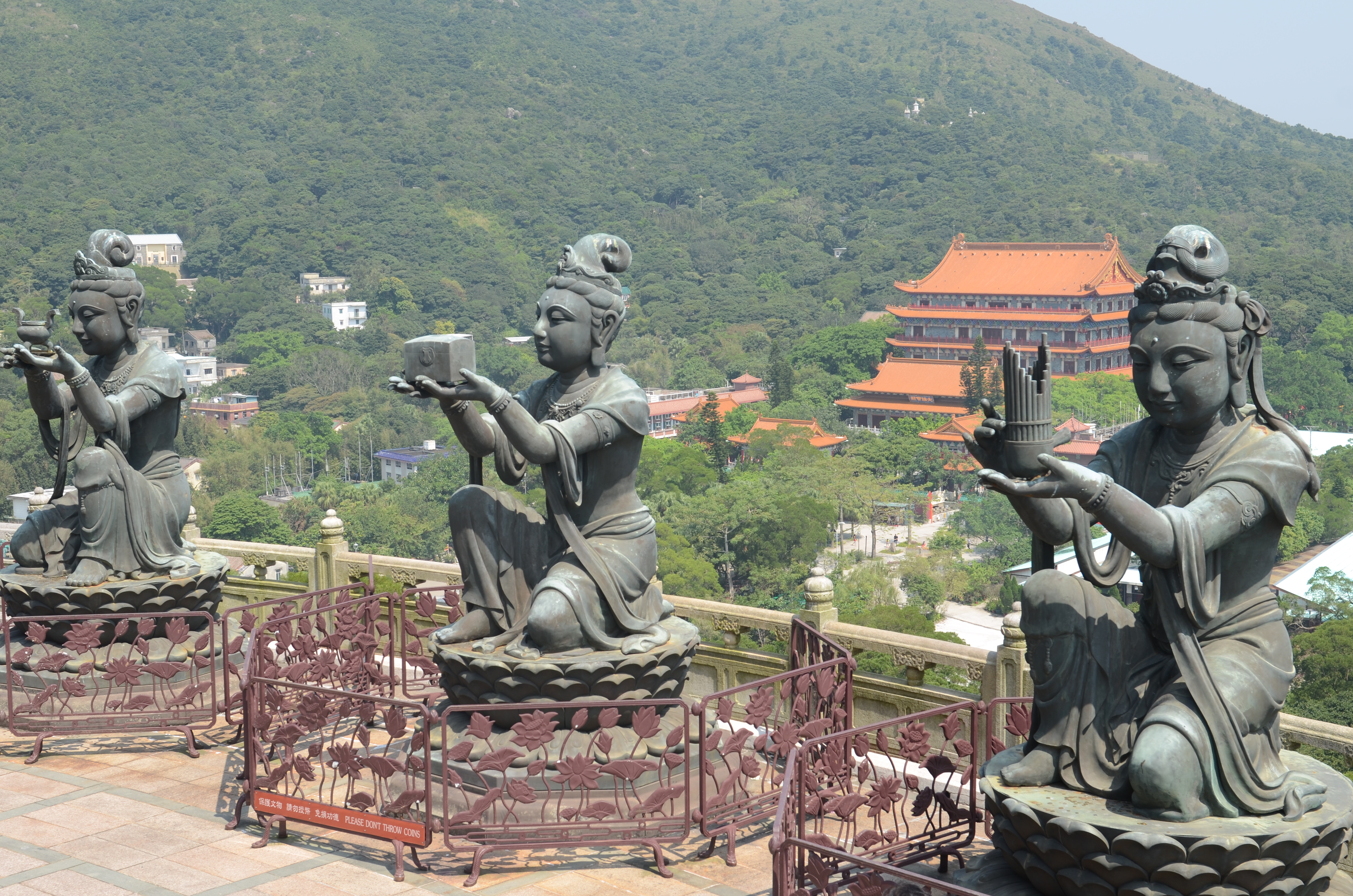 Vroeg uit de veren want we gaan naar Lantau. We lopen naar de metro. De stad ruikt nu al naar eten. De trip is iets langer met de metro, we moeten immers naar een ander eiland. We lopen richting de kabelbaan alwaar we tegen een Chineesje lopen die alle mogelijkheden op Lantau met handen en voeten uitlegt. We kiezen er voor om met de bus het eiland gaan verkennen. We treffen een kamikaze chauffeur die ons door het zeer bochtige, met veel opbrekingen van de weg, naar de Big Buddha brengt. Daar brengen we wel een paar uur rond. Eerst 268 treden omhoog om bij het reusachtige beeld te komen. Dan nog het indrukwekkende klooster bezoeken. We genieten volop. Dan de bus zoeken om naar Tai O te gaan. Dit schijnt het Venetië van Hong Kong te zijn. Nou dat is ook zo. Inmiddels is het drukkend warm, ruim 30+, lopen we tussen allemaal gedroogde vissen met de bijbehorende luchtjes en worden we al aardig moe. We laten alle indrukken nog even op ons inwerken om de bus weer teug te nemen. Inmiddels is het spits en bij iedere stop nemen we meer passagiers mee. Bij de metro hetzelfde verhaal. Wat ons wel op valt dat het er heel rustig is. Dus weinig gepraat en gegil. Geen muziek, geen charlatan die iets bespeelt. Nee alleen maar een mierenhoop van mensen die van a naar b willen. We lopen in deze mierenhoop terug naar ons hotel. Het lijkt wel de rosse buurt waar we door lopen. Omdat hier veel buitenlanders zitten zien de meisjes van plezier natuurlijk handel. Nou dat lukt aardig. Aan iedere arm van een mannelijke westerling hangt een petieterig Aziaatje. Gisteravond hadden we nog bij onze favo eettent gegeten, maar het was dit keer niet veel soeps. We hebben blijkbaar het verkeerde besteld. Tijdens het betalen ziet M de kok met een sigaret het vlees hakken en het in de rijst duwen. We hebben het even hiermee gehad. Dus we gaan naar een fancy hippe tent. Een echte Hongkonger homo brengt ons eerst groene thee en neemt de bestelling op. Als starter nemen wonton. En als hoofdgerecht fried Rice met zoetzure varkensvlees. Dat vlees was kei en de kei hard en inclusief de botten. En oja de wonton werd het nagerecht. Toch maar weer terug naar die andere tent?