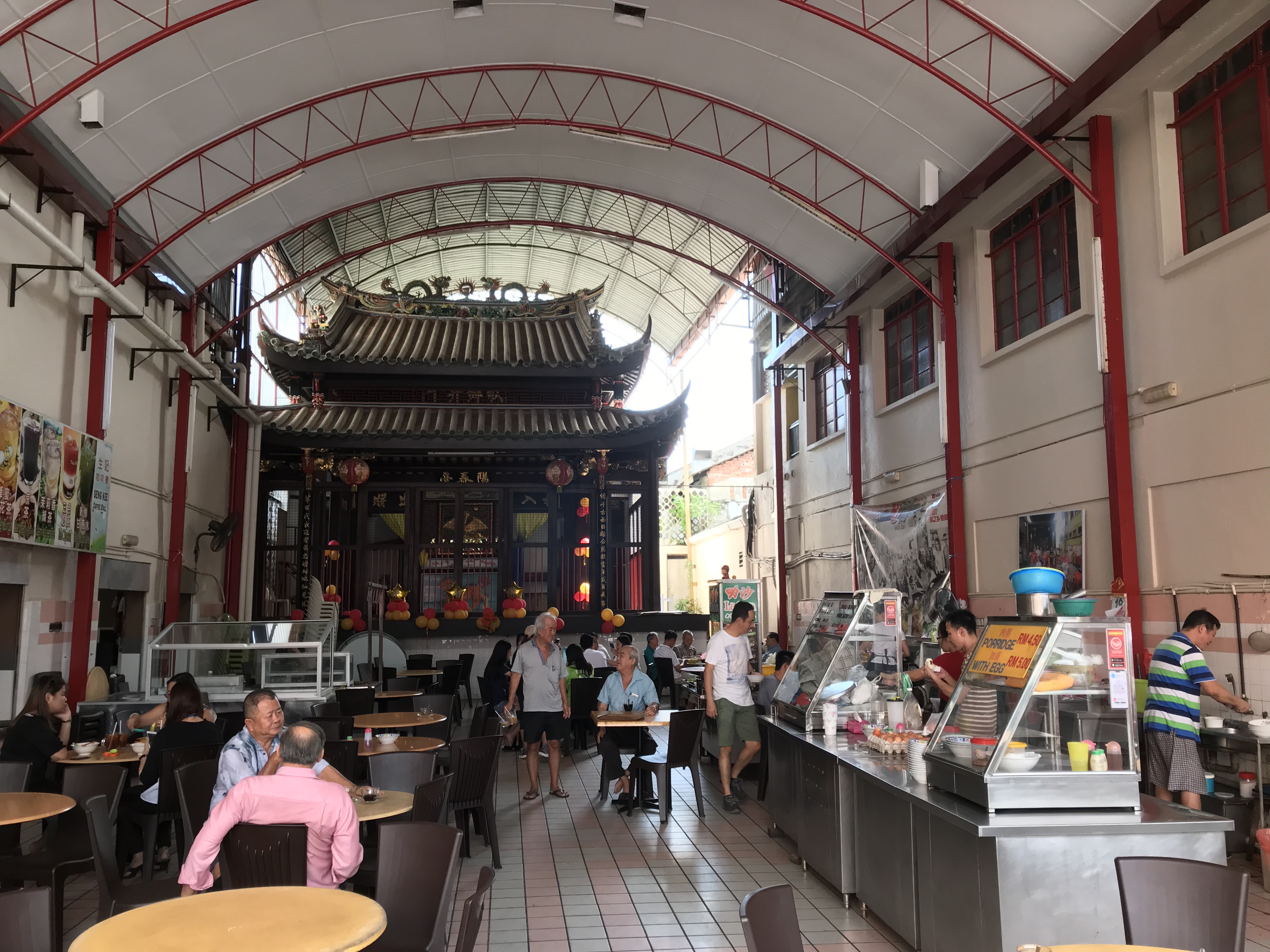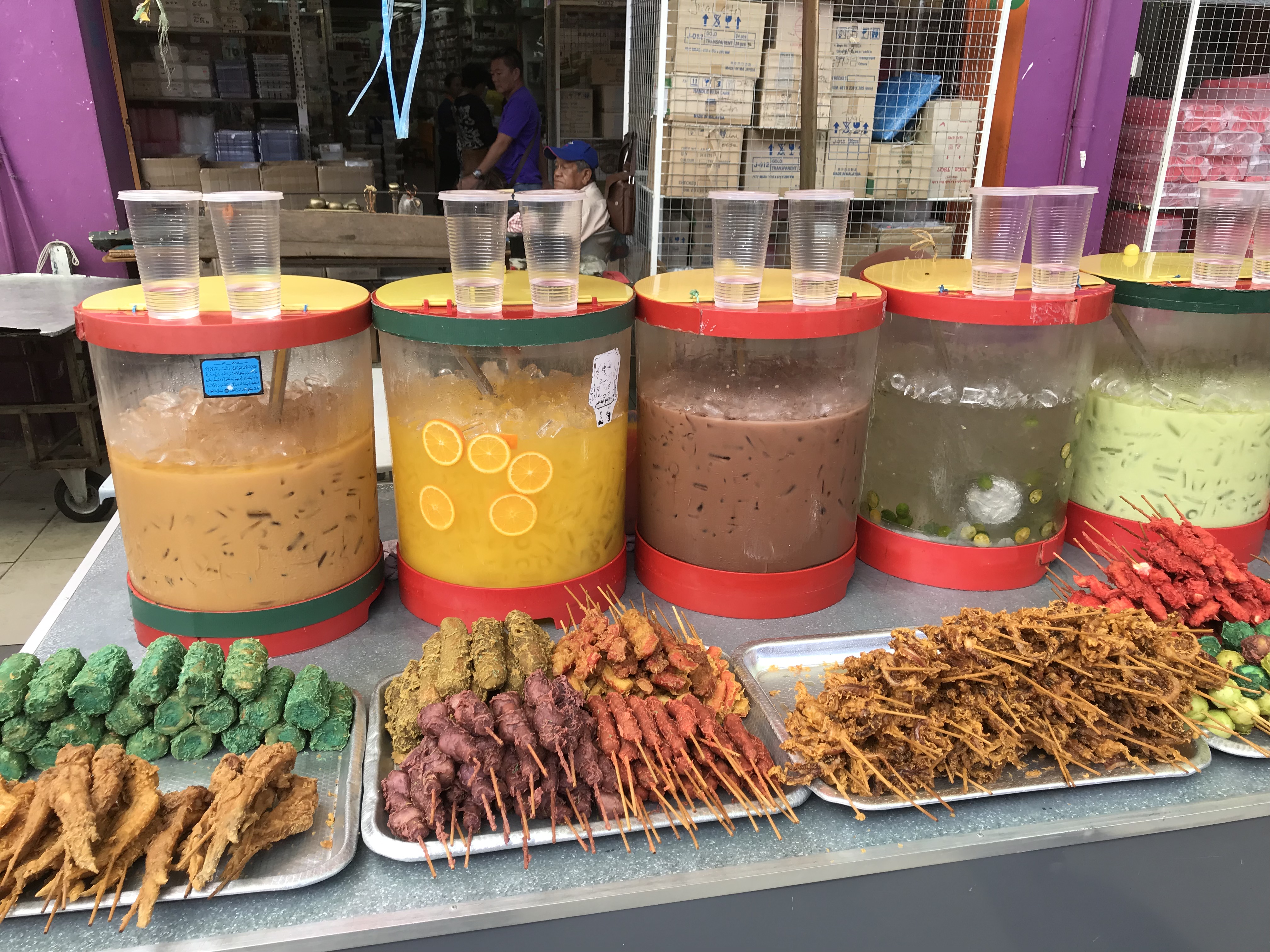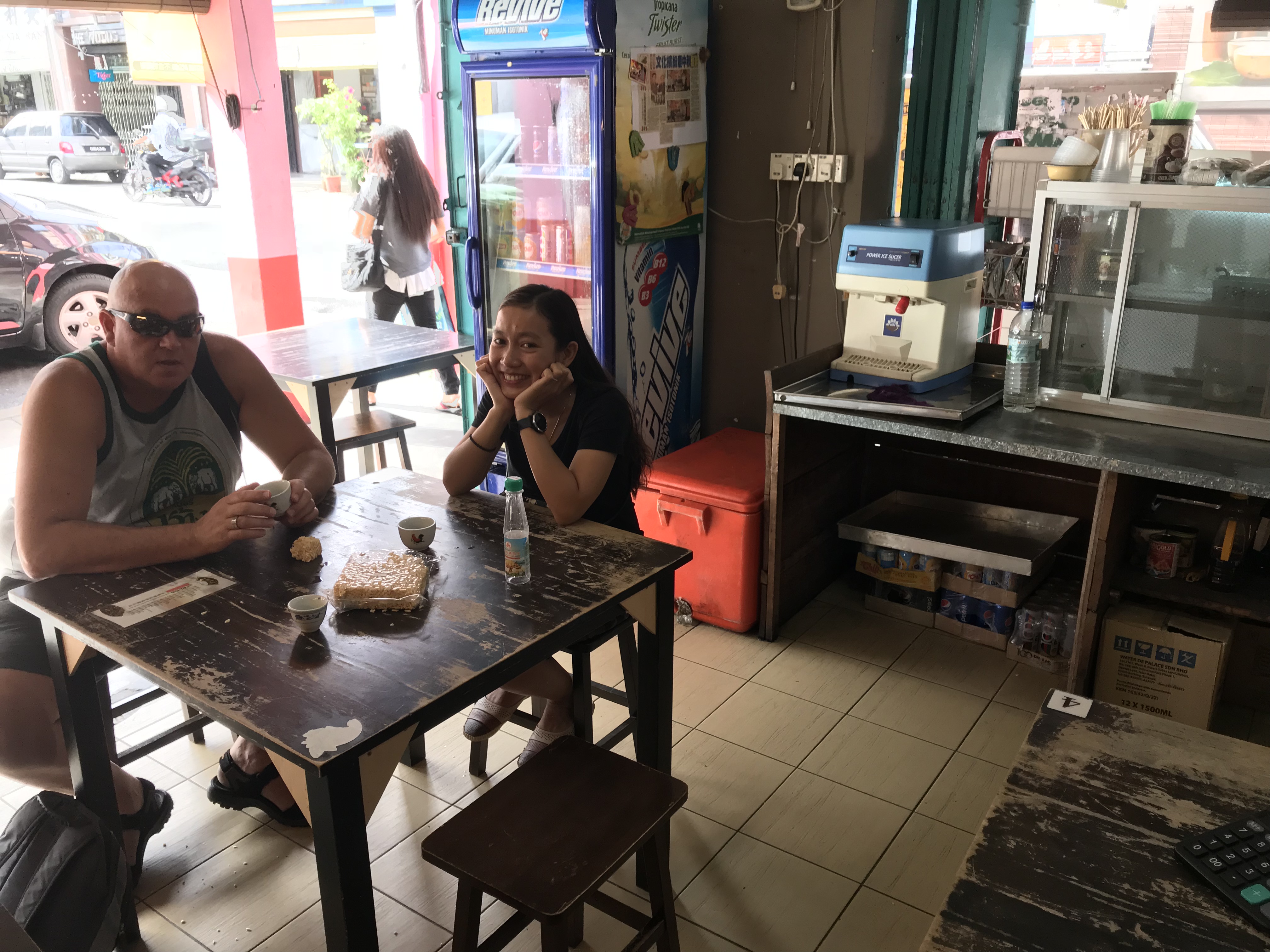Oh ja wat hier heel beroemd is Bah Kut Teh. Huh ja,….”bah kut teh”, je denkt hier loop ik aan voorbij. Retedruk vanaf ‘s morgens vroeg bij deze tenten. Die tegenover ons hotel schijnt de beste te zijn. Het is een soort donkere warme drank (bouillonachtig maar dan wat zeer goed voor je lichaam is) en dat eet je dan met rijst en iets vlezigs. Uiteindelijk zijn we daar ook beland. Wisten wij veel wat het is. Dus een slokje van de bouillon gehad. Rijst erbij en iets met varkensvlees. Dit was erg lekker de teh hebben we gelaten voor wat het is.
