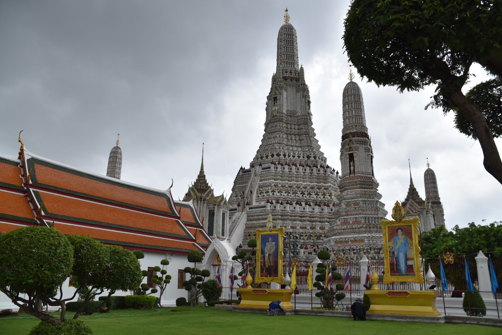 Heerlijk een dagje vrij. We slapen uit… om 7 uur toch wakker en langzaam opstaan en heerlijk gaan ontbijten. Er is van alles te krijgen. We willen vandaag met de boot over de Phraya rivier. We kopen een dagticket. Het is altijd zo mooi om te zien hoe ze scheuren over de rivier. Het is een beetje donker weer. Maar wel warm. Onze eerste stop wordt Wat Arun.
