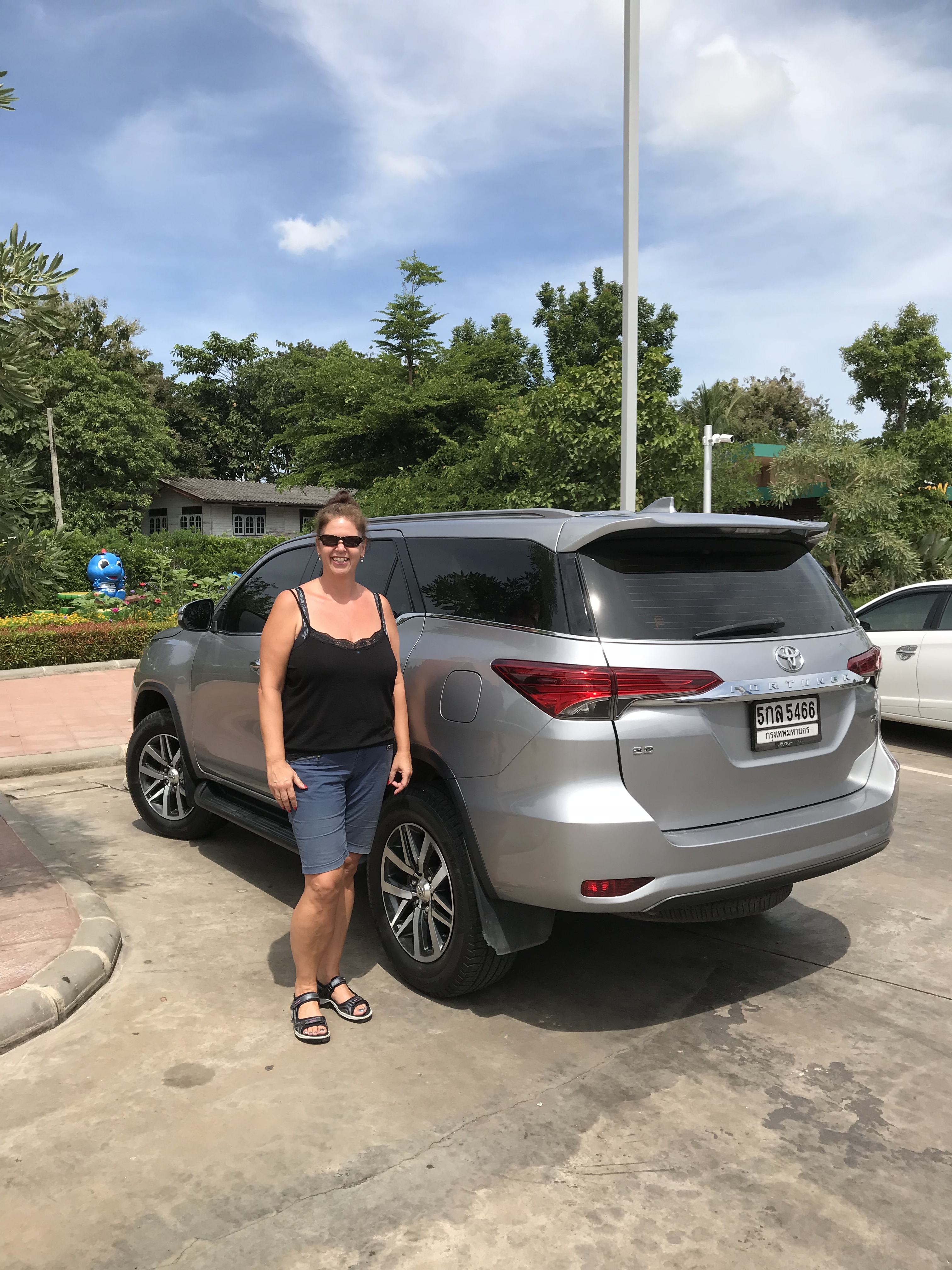 Een lust voor het oog. De wegen zijn wel aardig. Omdat het verkeer heel wisselend is (langzame auto’s, scooters, vrachtwagen, kleine tractoren) moet je zeer alert zijn met rijden. En ook het links rijden is even wennen. Richting aangeven zit net aan de andere kant dus de ruitenwissers gaan vaak aan. Maar het went allemaal. O ja we begonnen de dag natuurlijk wel met de auto door de wasstraat. Maar eerst moesten we die vinden. Dan nog onderhandelen over de prijs. Maar voor 100 bath wordt met drieman/vrouw sterk de auto onder handen genomen. In nog geen kwartiertje is hij stof vrij. En dan beginnen we echt met de tweede etappe. R baalt gelijk. M stuurt hem door de achterbuurten (waar de wegen iets wat stoffiger en slechter zijn) dus de fris gelapte auto is van korte duur. Rond een uurtje of drie zijn we in Ubon Ratchathani. Onderweg hebben we nog een Phuang Malai gekocht. Dit is een bloemenkrans die bijna iedere chauffeur aan de achteruitkijkspiegel in de auto hangt. Het is een symbool voor geluk en respect. Bij ieder stoplicht worden deze kransen wel aangeboden. Voor 20 bath heb je er 1. In Ubo Ratchathani slapen we in hotel Laithong Hotel. Een wat gedateerd hotel, waar de airco lucht uitblaast maar geen verkoeling geeft. Ubon Ratchathani is geen wereldplaats we vinden het dan ook niet erg om morgen weer verder te trekken.