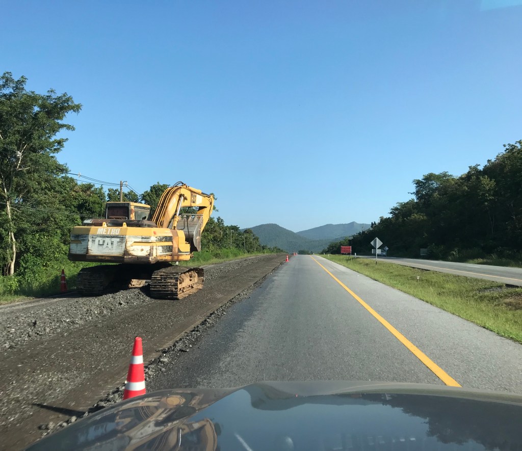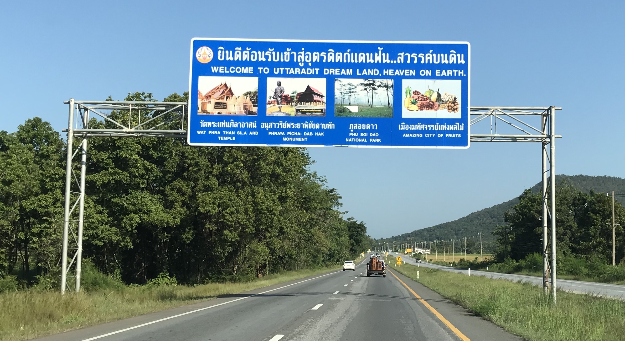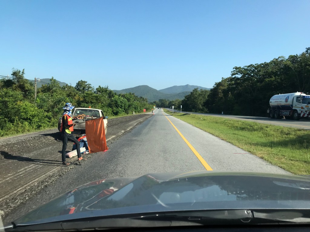 We vertrekken vroeg uit Khon Kaen. Het is een heuvelachtige route naar Phitsanulok. De bochten zijn scherp, de kuilen zijn diep (het lijken soms wel de potholes in Zuid-Afrika).