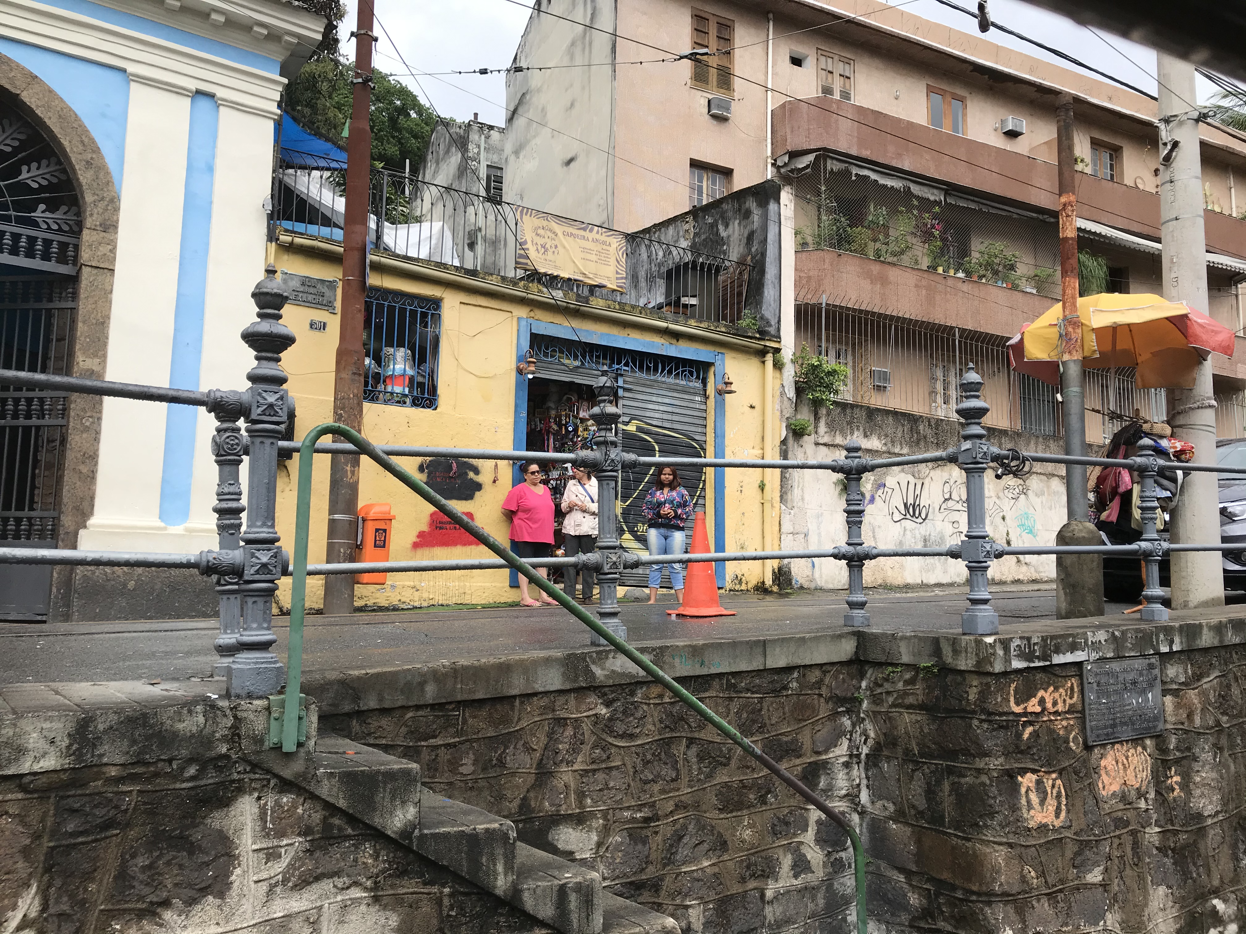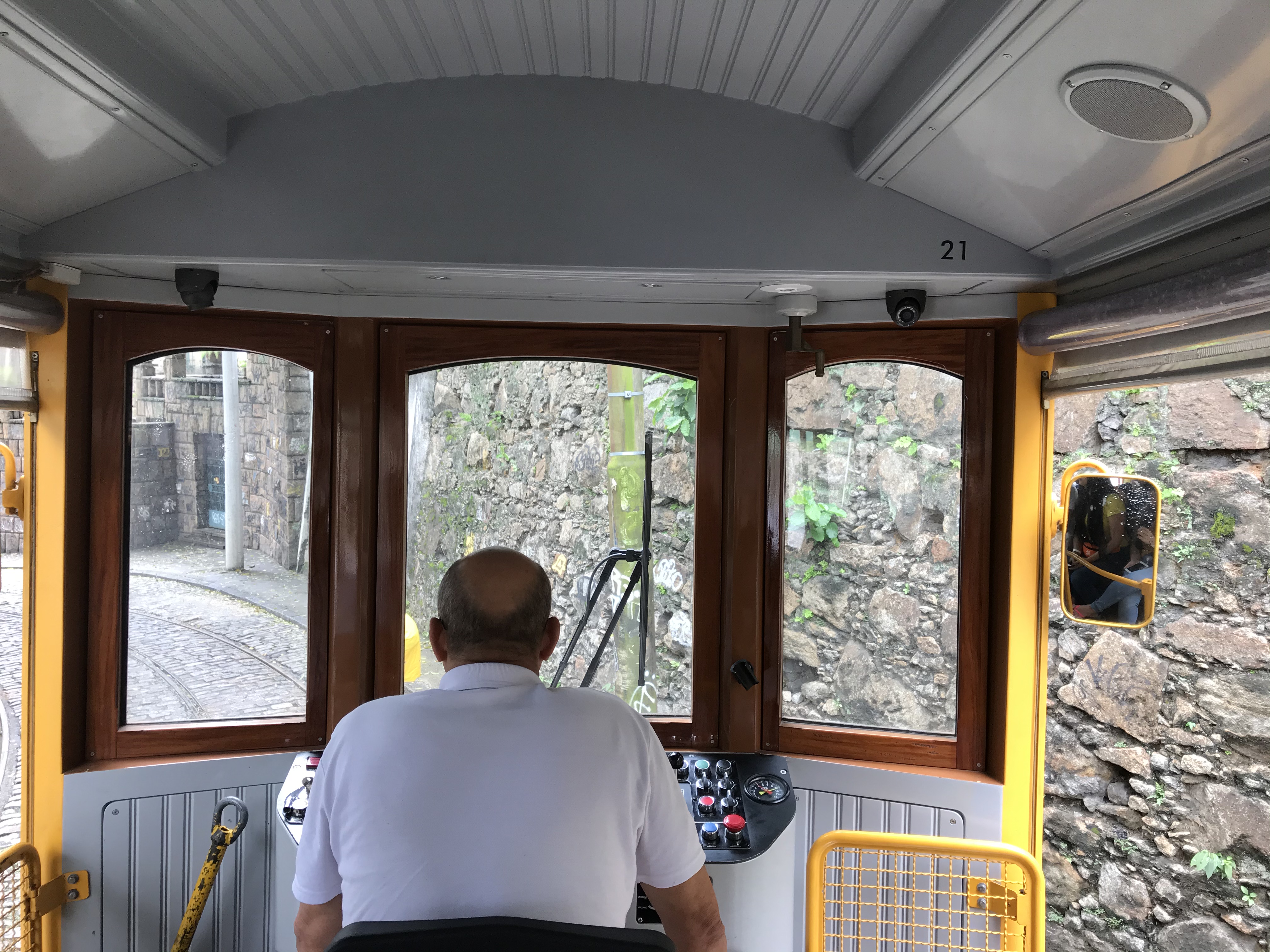 Tja als je dan een paar Europeanen in je tram hebt zitten dan lukt dat niet. Nou echt wel. Inschikken en nog eens inschikken. Aan de timetable doen ze niet meer. Als er maar 32 mensen inzitten. Dan gaan we weg. We zitten achterin. Achter ons staan hulpploegen. Ze schreeuwen naar elkaar. Bij de verschillende uitstappunten blijft er 1 achter. Uiteindelijk is de halve ploeg ergens neergezet. 1 mag voor conducteur spelen. De locals betalen minder en dat wordt goed gecontroleerd. Het is een prachtige rit, zeker de moeite waard. We komen aan de praat met een paar Engelsen. Meneer hangt buitenboord in het kader van 4 op een rij. Hij hangt nog aan de reling en zegt niet zoveel. Het is een “slechte” buurt. Gisteren werd ons al afgeraden om sieraden om te doen. We zijn immers mooi zoals we zijn. Is dat geen mooie uitdrukking van de gids. Met minimale bepakking zijn we dan ook op weg. We gaan door nauwe wegen, stijl omhoog, over klinkers, rakelings langs auto’s en muren. We rijden langs favelas. Kortom we genieten. We besluiten om de tram gelijk weer terug te nemen. Nu gaan de heuvel af. Op een gegeven moment stapt een hulp uit. Die strooit zand op de rails. We glijden nl steeds door. M zag ons al tegen de muur aan knallen. Maar ja dit hoort er ook bij. Veilig komen we weer aan. Met de Uber terug naar de basis. We zien een leuk tentje en eten daar wat. Inmiddels wijs geworden bestellen we pasteitjes om te delen. Heerlijk en meer dan genoeg.