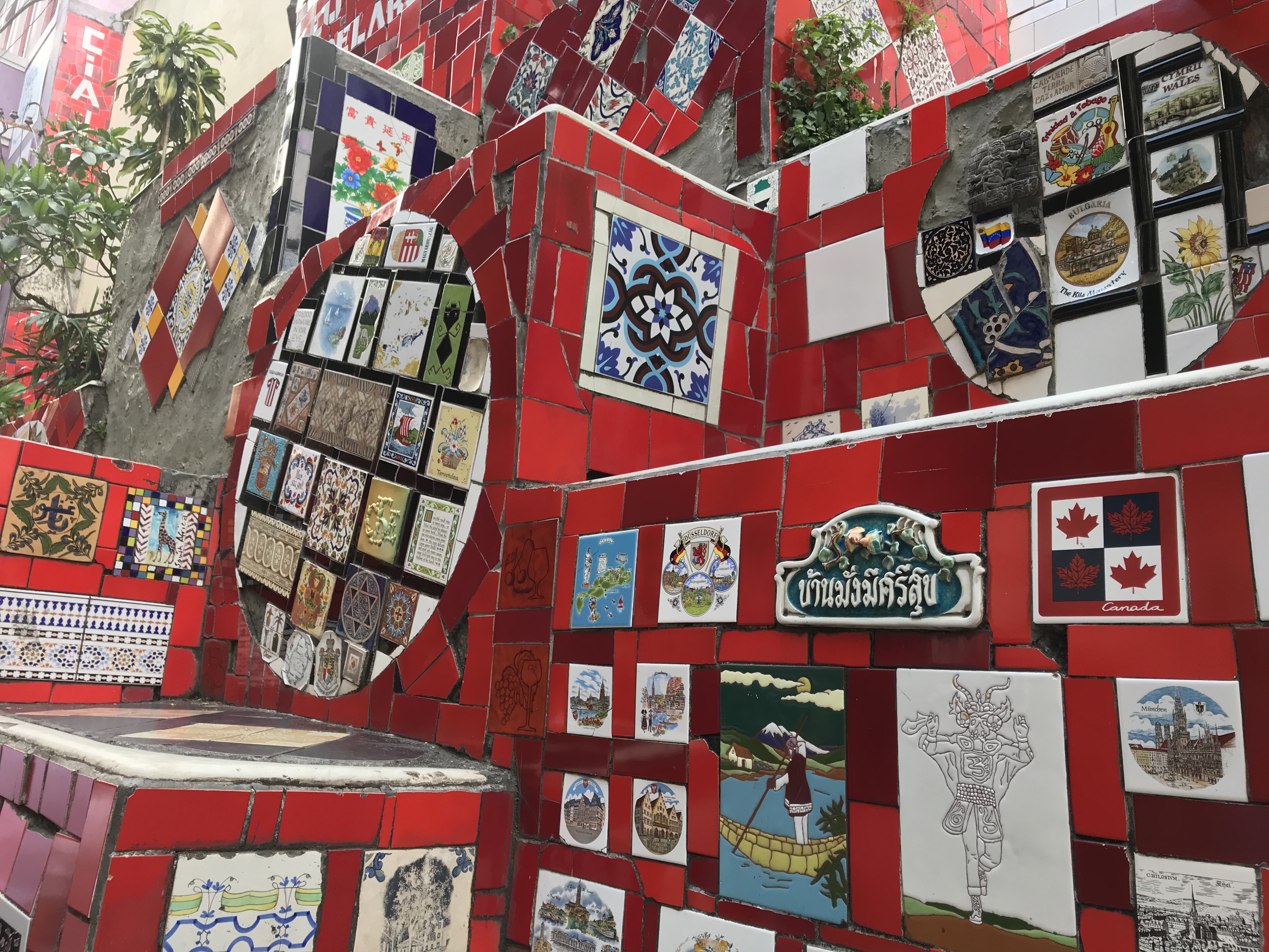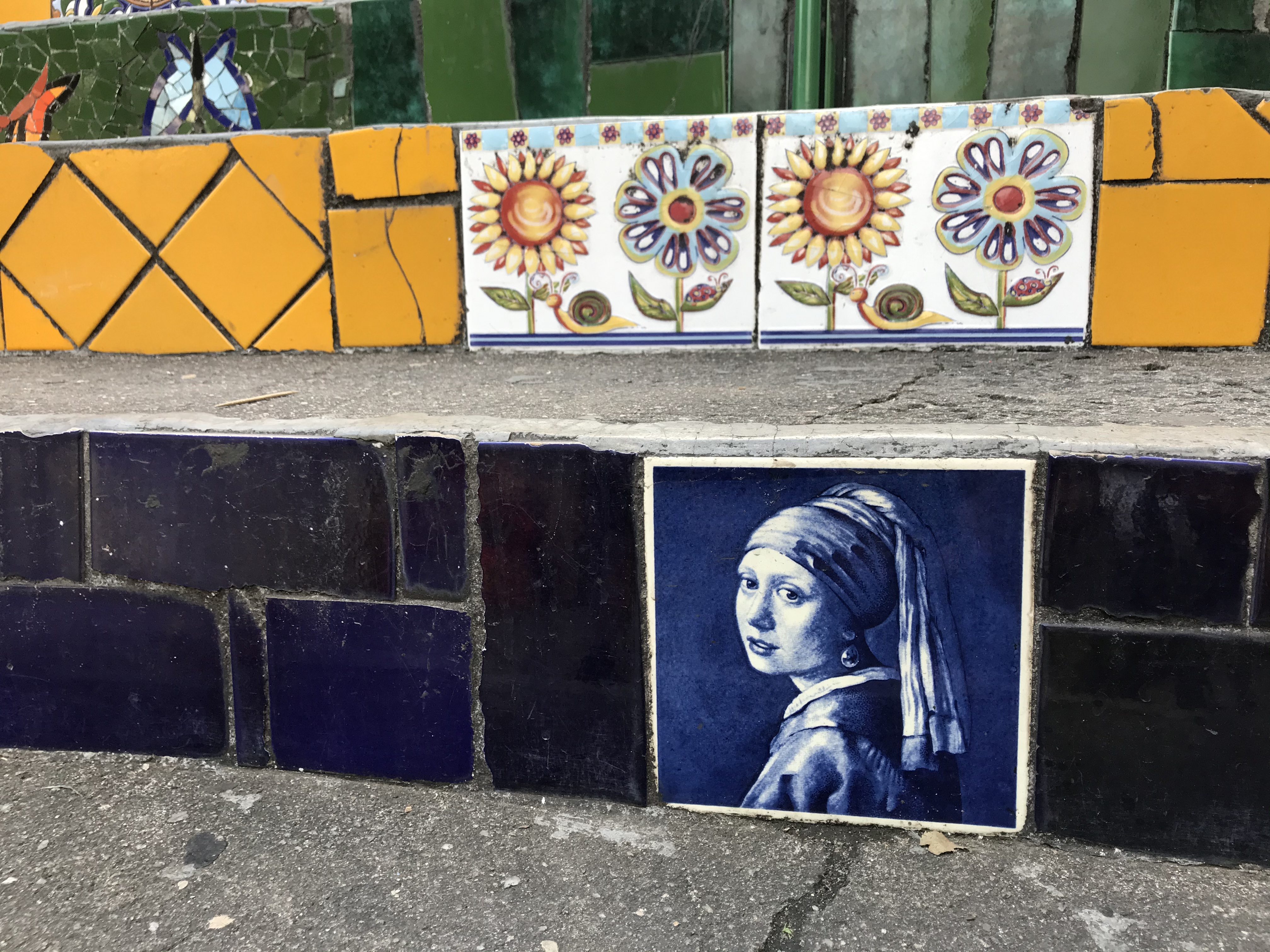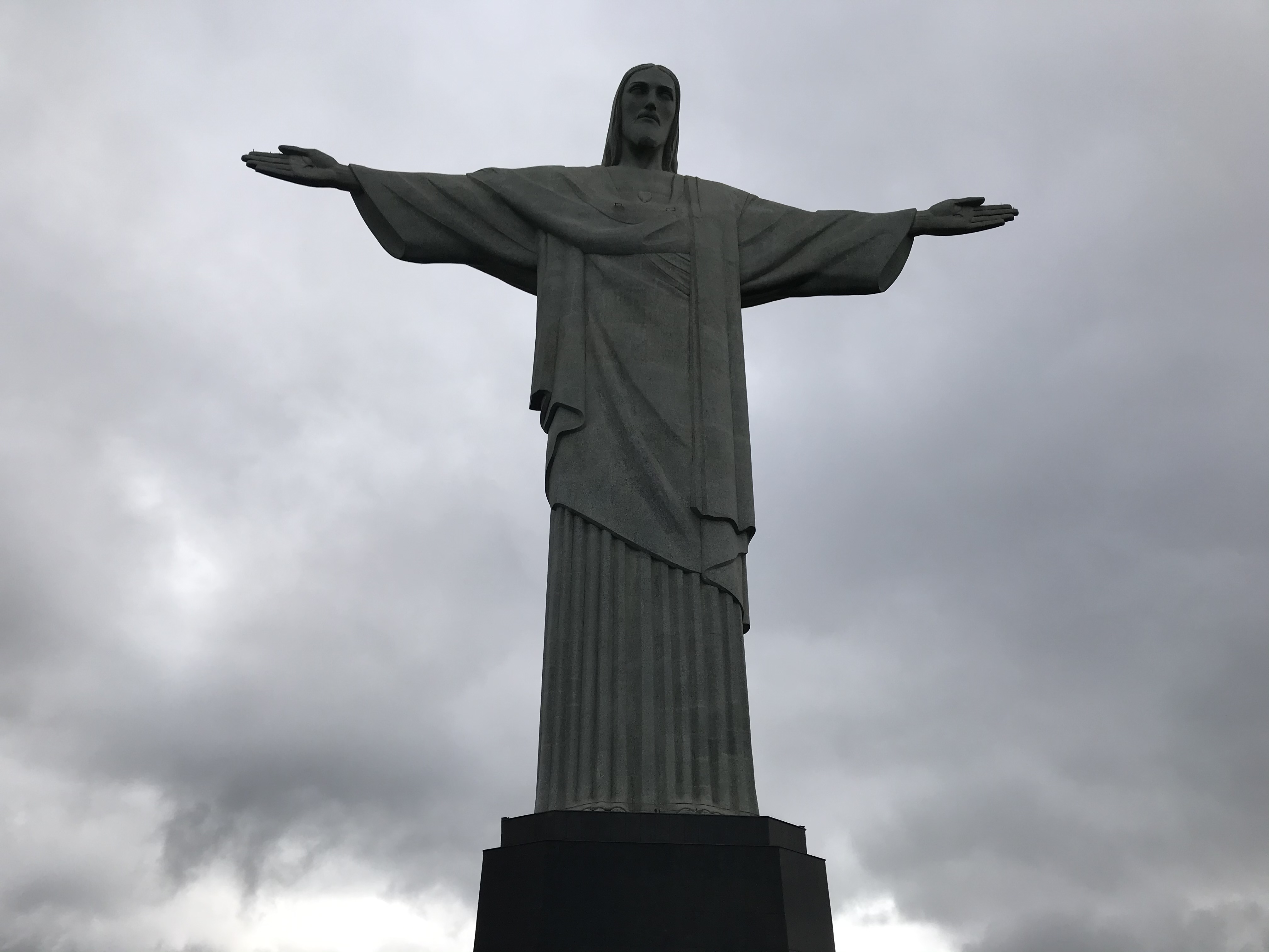 Om 14 uur worden we opgehaald voor de excursie naar het Christus beeld en de trappen. Wijs geworden van gisteren hadden we al niet verwacht dat er om 14 uur er iemand zou zijn. Het werd weer drie kwartier later. Het is nog steeds droog! Het busje zit vol. De mensen zuchten als we binnen stappen. Die waren het ook al zat. De gids een popiejopie waar we na 5 minuten al zat van waren. Er moesten nog meer mensen opgehaald worden. Het wordt later en later. M ziet het hele Christus beeld in rook opgaan. Want we gaan immers eerst langs de trappen Escadaria Selaron. De chauffeur is ook niet goed snik. We sjezen naar boven. De wegen zijn niet zo heel goed. We schudden allemaal door de bus. De een klapt tegen het raam, de ander stoot zn hoofd tegen het plafond. Echt onverantwoord. Maar goed, M laat de pret niet drukken. Met gierende banden staan we boven op de berg. Op naar Christus de Verlosser. Het miezert inmiddels. Het waait. Het is eigenlijk gewoon koud. M racet naar boven. Het is droog!!! Christus staat niet in de wolken!!! M is happy!!! Selfie hier een selfie daar. WoW hier staan we dan. Een geweldige ervaring. We worden weer in de bus gepropt. We racen door de straten, we halen in waar het niet kan, gelaten ondergaan we het.