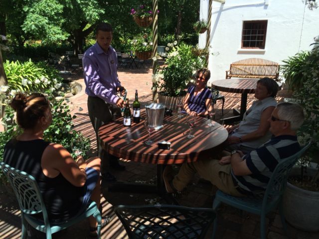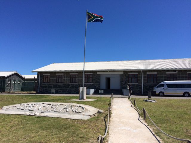 We wilden is lekker uitslapen,……dus not! Rond 05:30 uur worden we gewekt door onze “lokale telefoon”, huh ?? Wat zou er zijn en wie zou ons bellen?? Rudy neemt op en wordt in het onverstaanbaar Zulunees of zoiets toegesproken……. Zoek het uit en hij beëindigd het “gesprek”. Nou daar zit je dan, beiden rechtop in bed. Dan gaan we uiteindelijk maar weer vroeg ontbijten en voorafgaand aan onze boottrip naar Robben Island ff souvenirs scoren. Het is in tegenstelling tot afgelopen zondag nu strak blauw en de Tafelberg ligt in het zonnetje, we hebben hier vanuit het hotel mooi zicht op. Als we onze Jeep in de parkeergarage van het Waterfront gedropt hebben gaan we shoppen (of eigenlijk Marianne gaat shoppen). Dan is het tijd voor de ferry naar het eiland. We zitten lekker aan dek, er staat best nog wel veel vind en er is een stevige oceaandeining als gevolg van de storm van gister. Op Robbeneiland staat een bus op ons te wachten, we krijgen een rondleiding met een gids. Het eiland is klein, ongeveer 5 km lang en 3 km breed. Het eiland is rond 1650 door de Nederlanders eerst gebruikt als slavenhandelspost en daarna als gevangenis. Veel later overgenomen door de Britten om uiteindelijk door de Zuidafrikanen als politieke gevangenis gebruikt te worden. Allereerst verteld hij dat we uiterlijk om 15 uur van het eiland af moeten, dan gaat de laatste boot. Dit omdat er weer harde wind verwacht word. Uiteindelijk belanden we in het cellenblok waar ook Nelson Mandela heeft vastgezeten, dit in cel 4. Toch bijzonder om daar bij zijn cel te staan. Om niet op de laatste boot te wachten, maken wij ons stiekem los van de groep en spoeden ons richting het haventje. Daar ligt kleine boot die om 14 uur vertrekt, net aan boord vertrekt hij. Er staat idd al een behoorlijke wind en de boot gaat behoorlijk heen en weer. Ons plan was om nog even de Tafelberg te bezoeken, maar als we internetverbinding hebben bij een cafeetje, zien we dat de kabelbaan gestopt is vanwege de harde wind, jammer. Nou schijnt dat vrij vaak voor te komen. We nemen het er dan maar ff van en blijven hangen op een terrasje in de zon, dit onder het genot van een biertje.