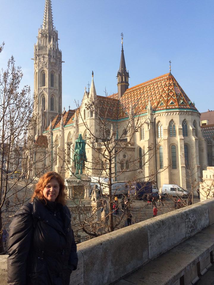 Vandaag vroeg opgestaan want we gaan de Danube Bend Tour doen. Met 2 Japanezen, 2 Spanjolen en 4 Italianen en uiteraard Clara onze gids op pad. Eerst over de kettingbrug, prachtig uitzicht over het Parlementsgebouwen, de burcht… Kortom al het moois wat Budapest te bieden heeft. ’s avonds is het hier net een sprookje met al die verlichte prachtige gebouwen. Maar goed we gaan eerst op weg naar Ezstergom, waar de grootste basiliek van Hongarije staat. Via Slowakije hebben we een prachtig uitzicht op het majestueuze gebouw en uiteraard de Donau. Een prachtige kathedraal. Carla is zeer enthousiast dus we weten nu alles… Via Visegrad, waar we het mooiste uitzicht op de Donauknie hebben gaan we naar Szentendre. Een artistiek, rustiek prachtig dorpje. Ondertussen leren we en zien we veel van Hongarije. Een prachtige keuze voor 2e kerstdag. De hongaren hebben in de huizen die aan de wegkant staan maar 1 raam of uiterlijk 2 aan de voorkant. Ze moesten nl per raam belasting betalen. Aan de zijkant hebben ze ook geen ramen want ze willen geen pottekijkers van buren hebben. Wel hebben ze bijna allemaal een veranda. Ter bescherming van regen maar ook voor de zon. Zo hebben we nog veel meer weetjes van Carla gekregen. Leuk mens! Na een aperatief lekker gegeten bij het Hard Rock cafe … Maar daarentegen heeft M vanmiddag aan de Goulash gezeten… Dus een mix van lokaal en internationaal deze dag.