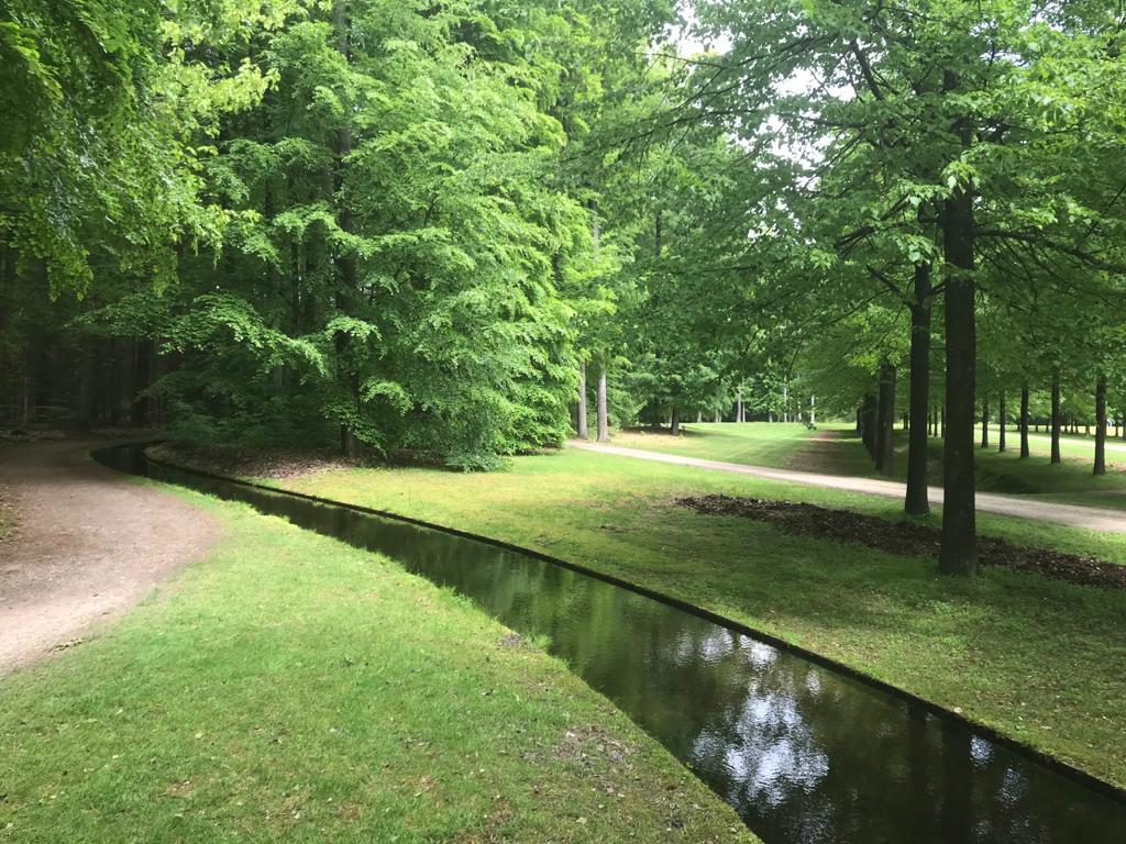 Het paleispark heeft diverse routes. Maar als je van ver komt, ga je natuurlijk niet voor een lullige 2 of 5 km. Nee we gaan voor die van 13,5 km. Gewapend met een rugzak vol proviand. Kleding die alle soorten weer kan doorstaan (al doende zijn we wijs geworden… van het snikheet hebben tot bibberend van de kou, werken we nu met laagjes. En ja ik weet het … dat is niks nieuws. Dit doet iedereen. Nou ja ik dus nog niet). En lopen maar.