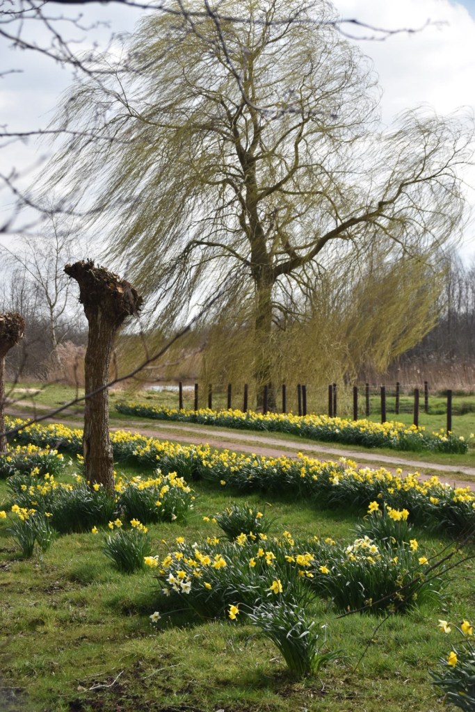 Een prachtige lentetuin komen we tegen. Honderden narcissen met knotwilgen. Dan komen we uit in Munnekeburen. OP het laantje er naar toe konden we verschillende poepscheppen lenen. Nee dank je.
