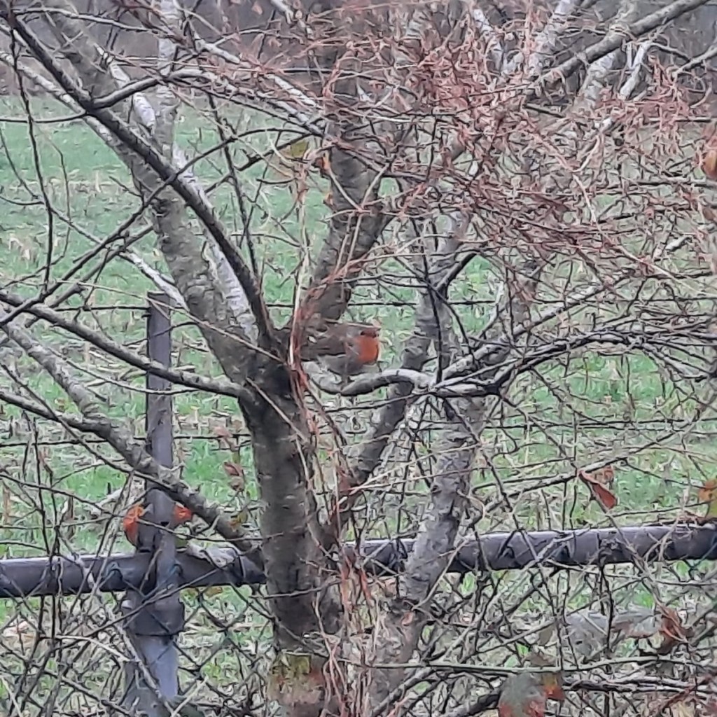 Het was een aardige route. Zeker het eerste gedeelte tussen de zandverstuivingen is prachtig. Daarna was het wel aardig. Het was ook wel heel somber weer, dat helpt ook niet mee. En omdat we blijkbaar niet altijd goed hebben opgelet moesten we aan de route een eigen draai geven. Maar na 17,35 km waren we weer terug bij af. En werden we verwelkomt door een roodborstje. Op naar de volgende route!