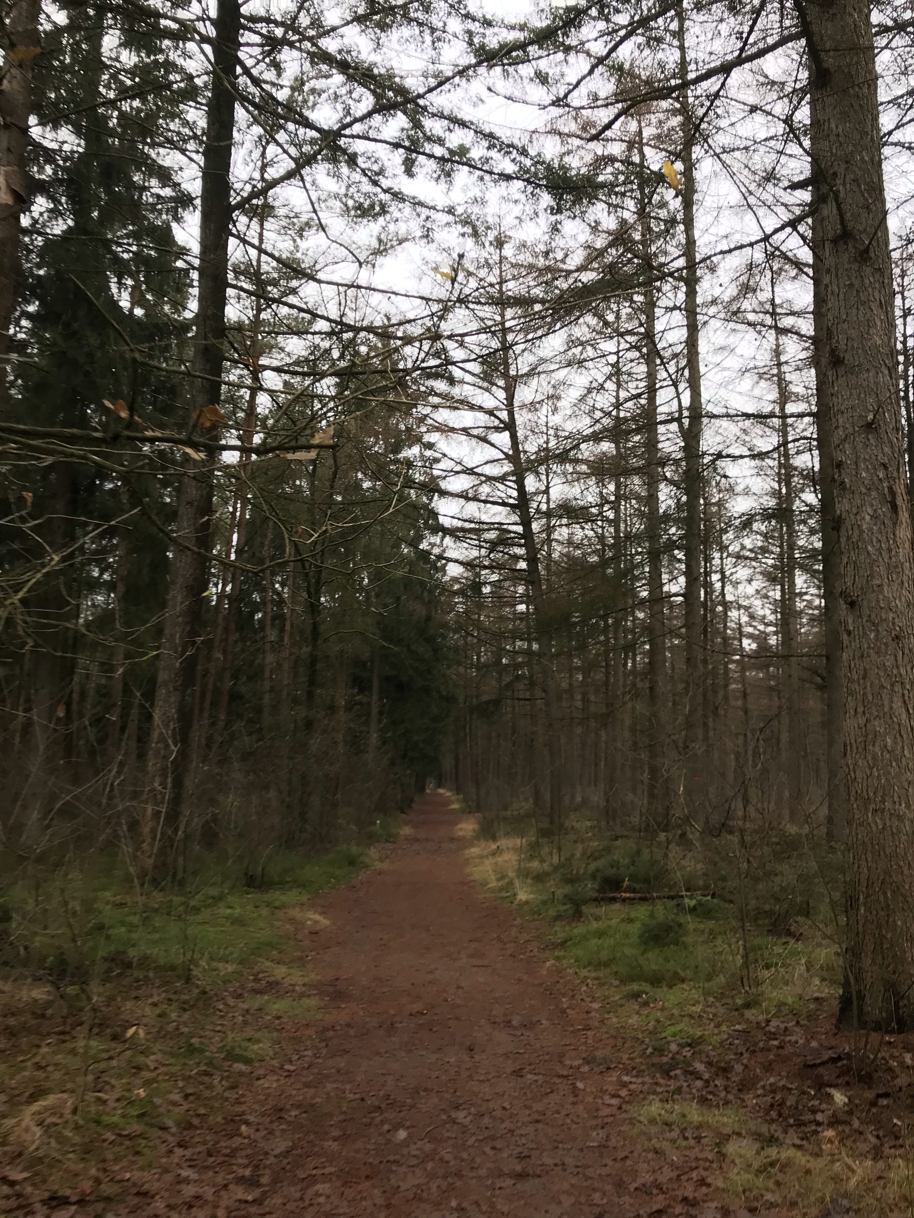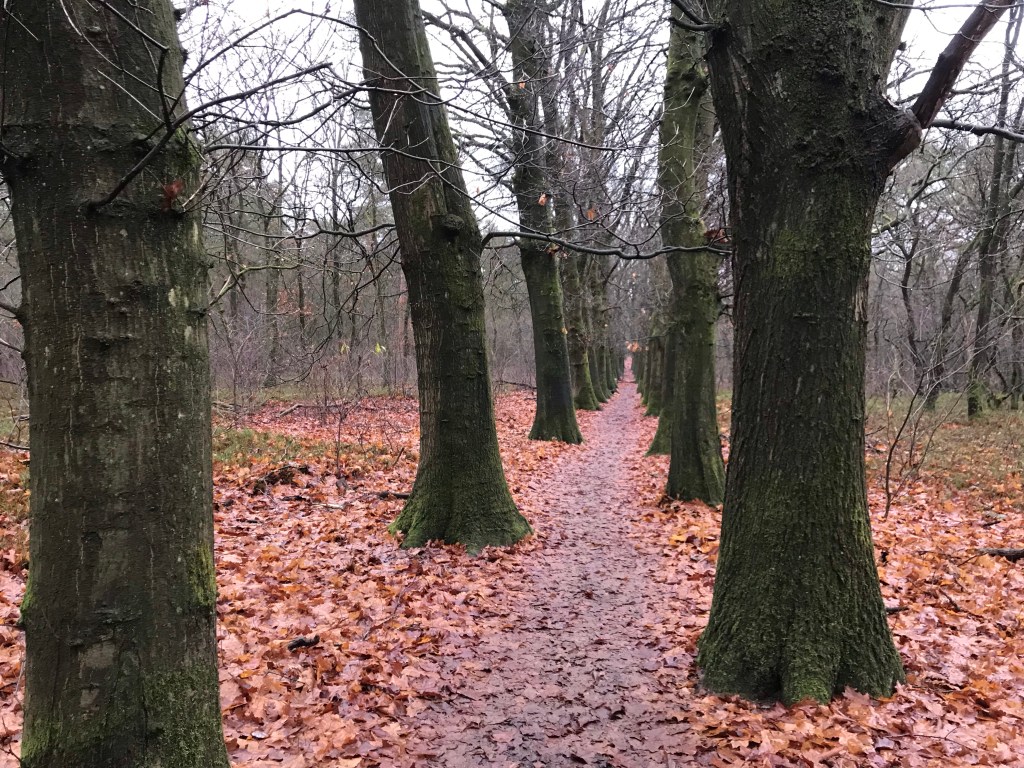 Maar goed ik ben dus onderweg. Met kleding aan die meer past bij het weer dan de vorige keer. Want zo koud wil ik het niet meer hebben. Ben ik bijna bij Otterlo. wegomlegging. Dikke 15 km om. Dus ik haal 10.30 uur niet. 10 minuten later dan gepland sta ik ook op het Mosselpad. We downloaden de route en gaan zowaar de goede kant op. We lopen eerst door de dorpsstraat. En al snel verdwijnen we via boerderij de Houtkamp in de bossen. Dat gaat via een oude ‘holle’ weg. Het klompenpad geeft aan: Langs deze weg loopt een dubbele houtwal, die ontstaan is doordat de grond uit de sloot aan weerzijden is opgeworpen. Het is prachtig om daar te wandelen. Dan lopen we over de randwal van het Otterlose bos. Dit is één van de oudste bossen van de Veluwe. De wal is de laatst 1000 jaar ontstaan door opgewaaid stuifzand. Het is soms een flinke klim. Want het stuifzand is niet op gelijke hoogte opgestoven 😊. Dus omhoog en omlaag. We hebben onze sport ook weer gedaan. Dat komt wel goed uit zo in de lockdown.
