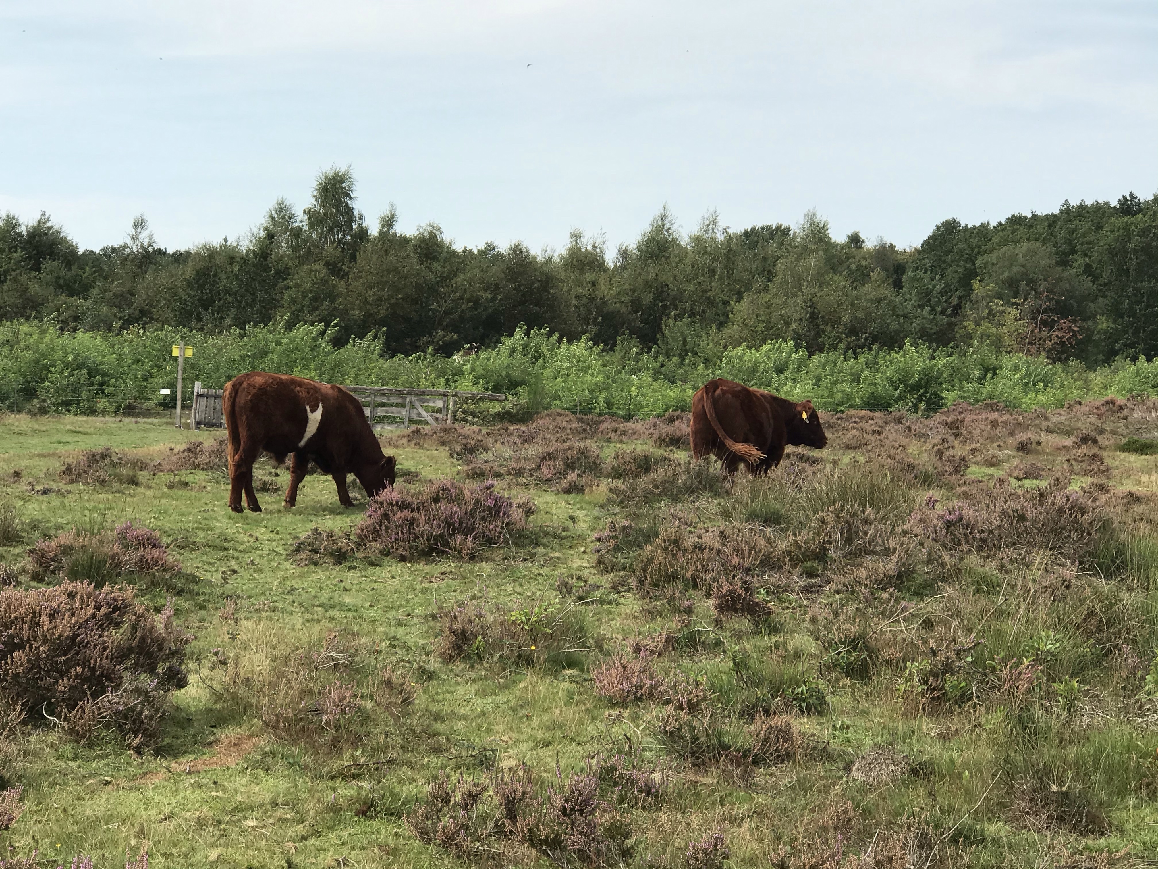 Natuurmonumenten: Heidekoeien begrazen afgegraven akkers. Heidekoetjes begrazen de centrale laagte. Zij voorkomen dat het dichtgroeit met bos, waardoor je er nu prachtig kunt wandelen.
