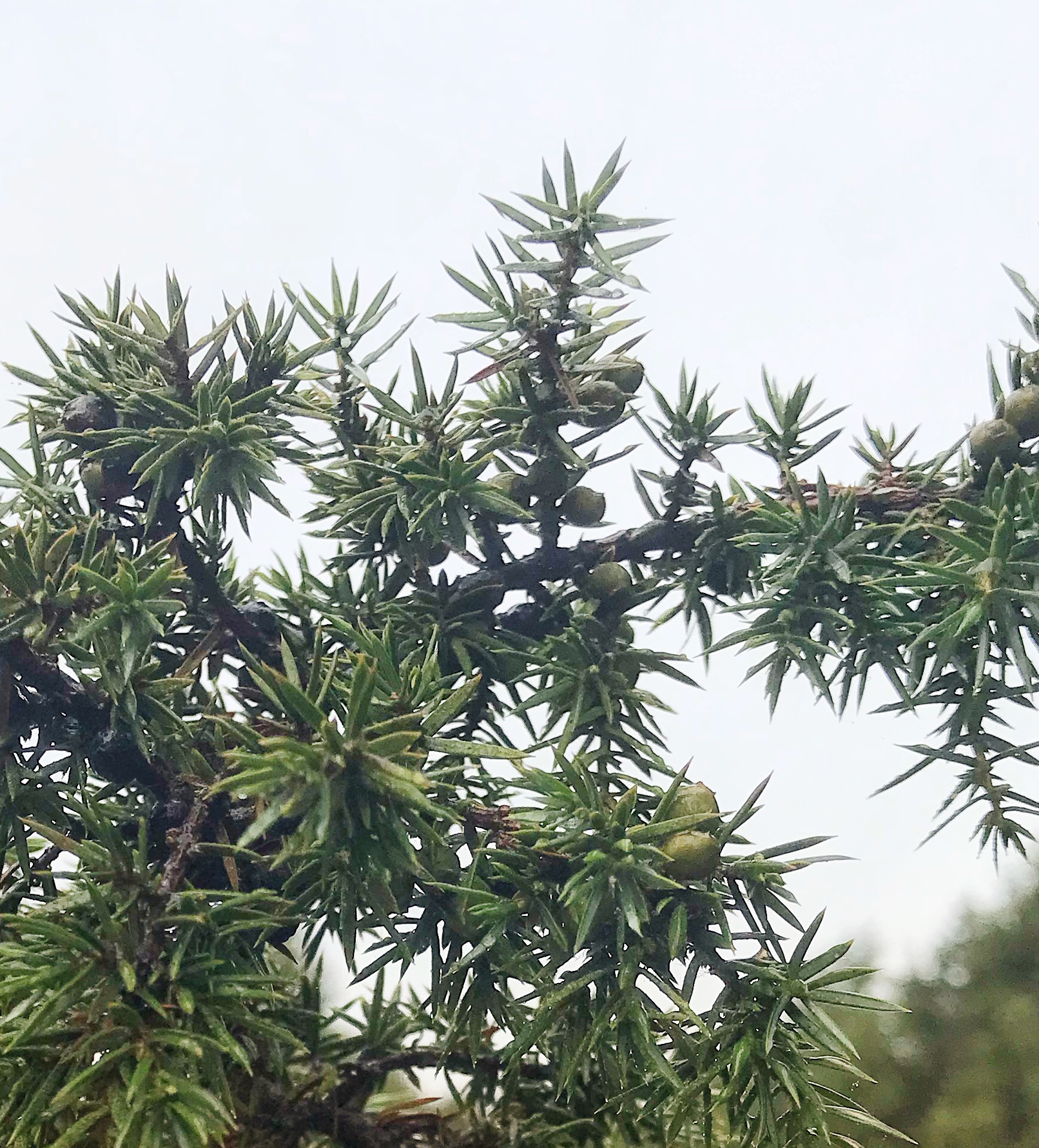 We genieten dan ook van de struiken. Ze worden volop gefotografeerd. We zoeken even op wanneer ze bloeien: De planten bloeien van april tot mei, omdat de soort tweehuizig is op aparte mannelijke en vrouwelijke exemplaren. De vruchten bevatten 1 tot 3 (meestal 3) zaden. In het eerste jaar zijn de ‘bessen’ groen van kleur, in het tweede jaar rijpen ze en worden ze blauwzwart met een duidelijke berijping (blauwberijpt). In de herfst van het tweede jaar vallen de bessen massaal af.