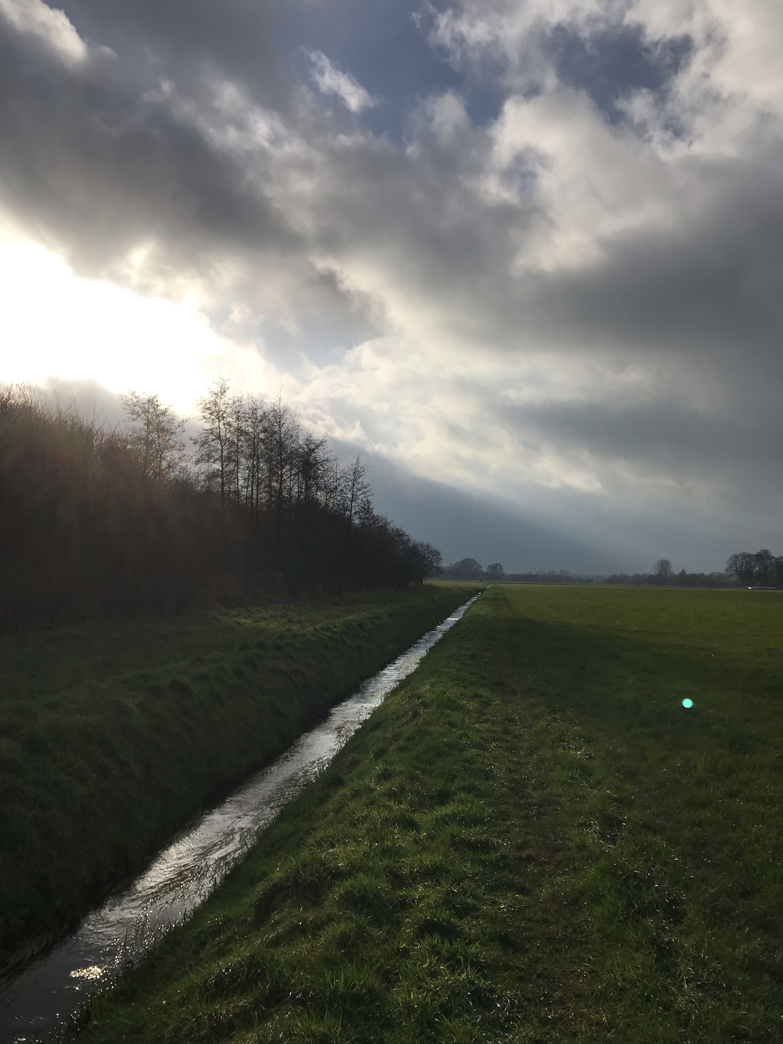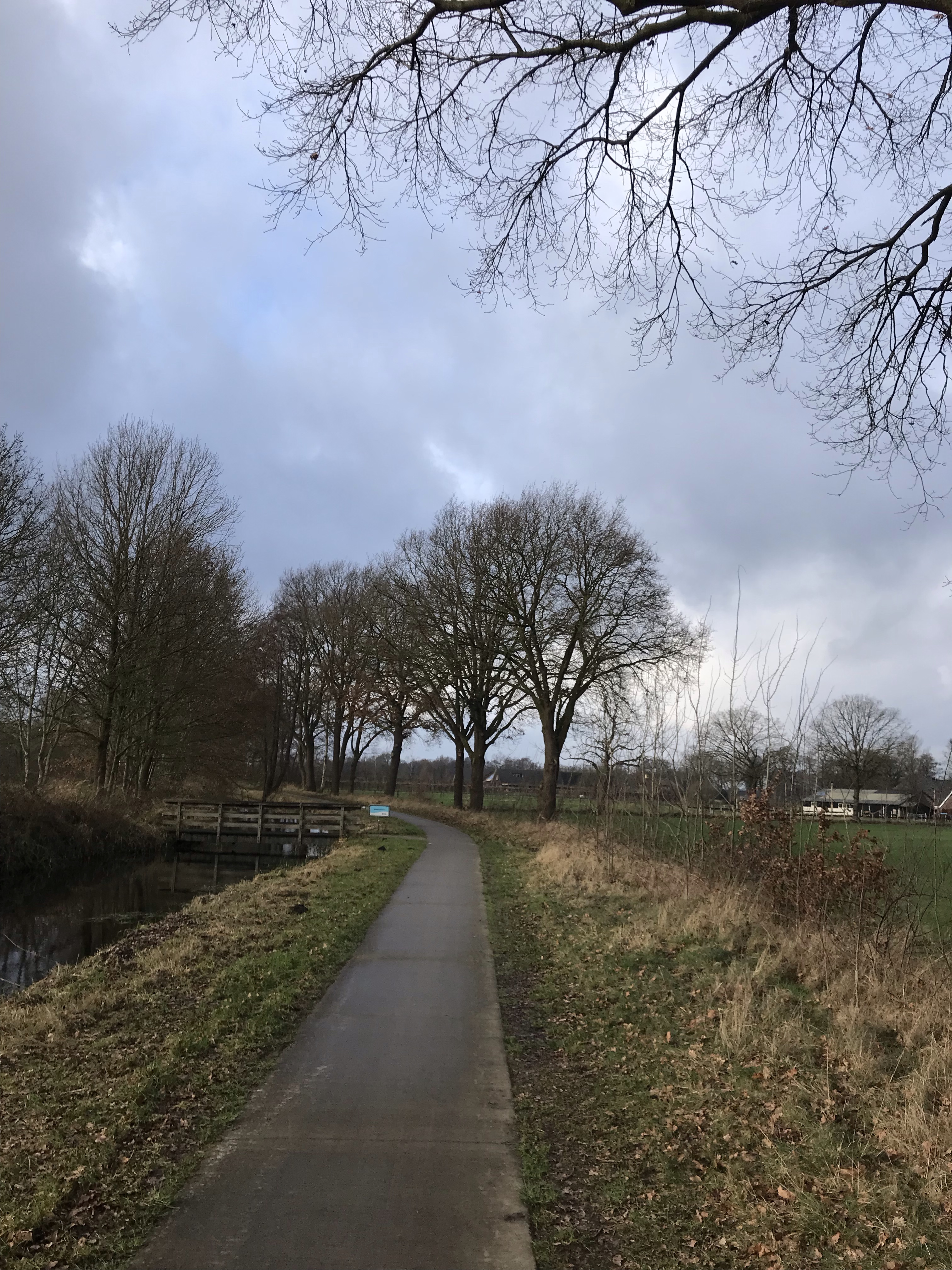 Na de verlenging piept de app weer en lopen we richting Doerfart. Wat wij hierbij het mooist vonden, behoudens de vele bomen en de vaart was de verharde weg 😊. We komen regelmatig bankjes tegen. Omdat het hier best kaal is en we nog niet halverwege te tocht zijn, lopen we toch door. Ik moet wel zeggen dat de mensen hier uiterst vriendelijk zijn. Het is groeten en gegroet worden. Gezellig!