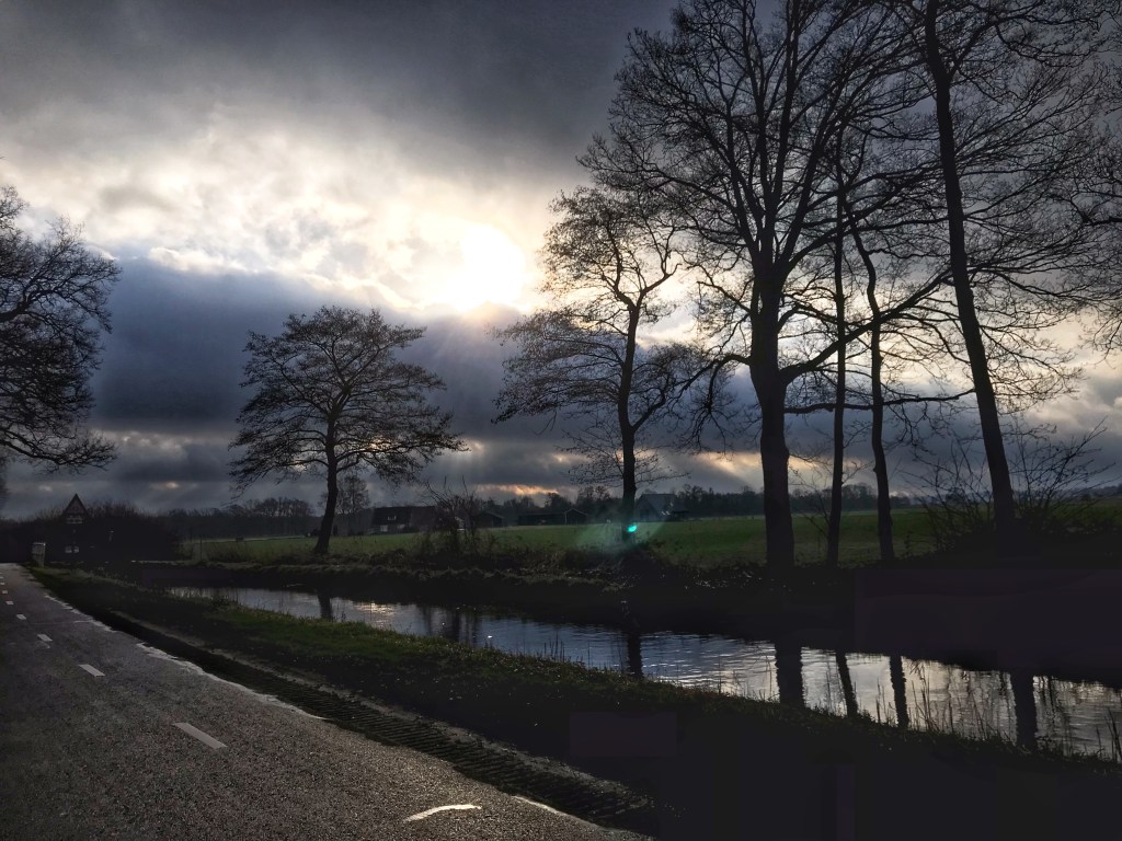 Hoe kiezen wij trouwens onze route uit? Nou dat gaat als volgt. We struinen het internet af op routes die tussen ons in liggen (ze woont in het midden vh land, ik wat noorderlijker) en minimaal 15 km bedragen. En dan ook bewegwijzert. Zonder dat, zouden we waarschijnlijk hopeloos verdwalen. Sinds een half jaar of zo, hebben we de klompenpaden ontdekt. Dus ik had dit keer een hele lijst gemaakt wat aan bovenstaande voorwaarden doet. Ik bekijk dus niet de route zelf. Dat is dit keer een leermoment geweest ☹.