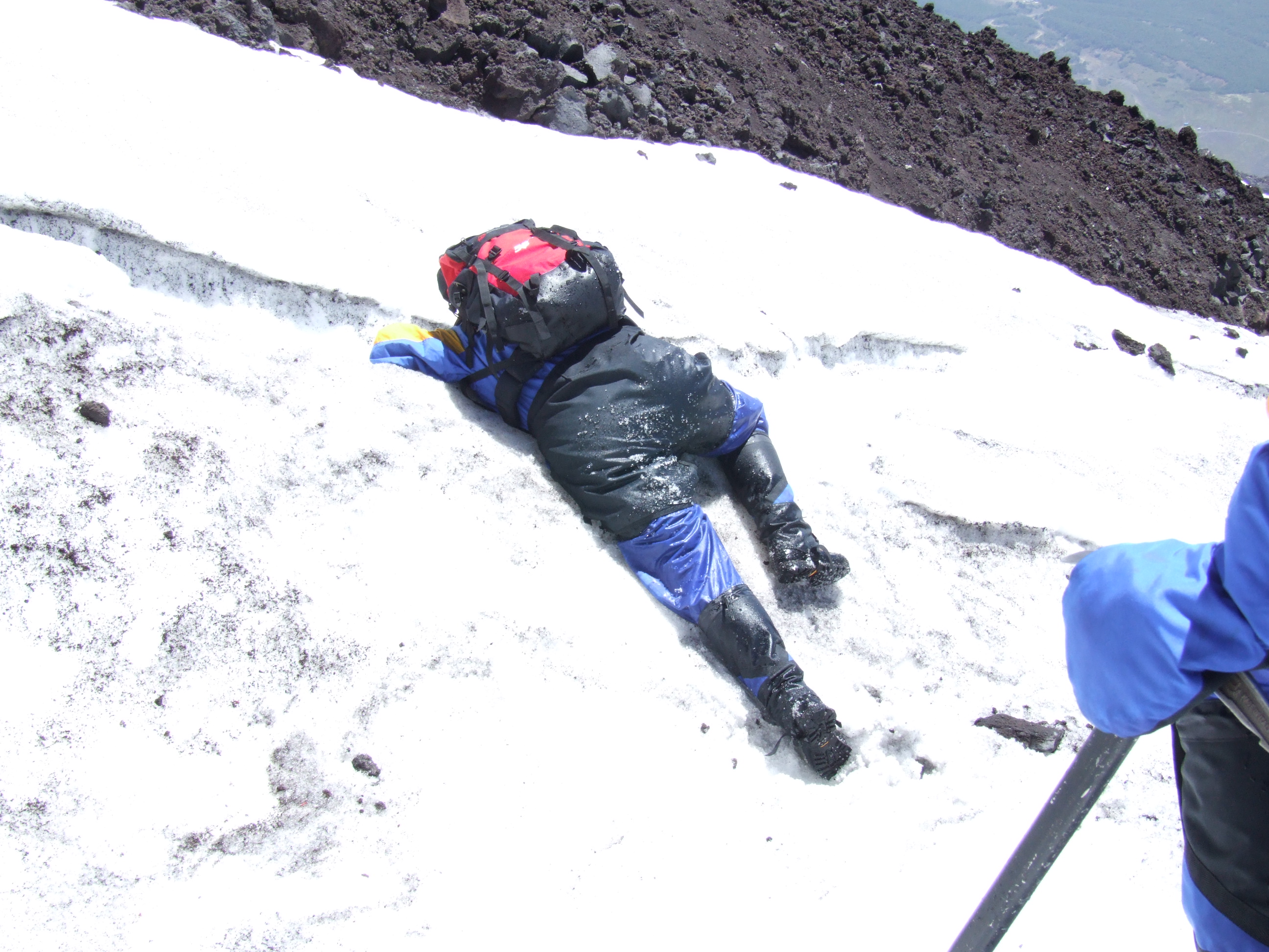 Eerst door een rotsachtige toestand lopen… last van mijn schenen en kuiten, want ja die hebben toch een kleine week stilgestaan van harde arbeid! En toen de sneeuw in. Eerst ging het nog wel, het was nog niet zo stijl. Al zigzaggend bewogen wij ons over de vulkaan. Allengs werd het steiler en steiler… kortom toen dacht ik alleen maar: wat doe ik hier in de goede vrede…. om zomaar te zeggen ik scheet bagger!!!!! Je gleed zo nu en dan weg, zo nu en dan was het erg ijzig dan weer sneeuwig dan weer super steil. Uiteindelijk waren we bij een tussenstop. Onderweg had ik me voor genomen ik stop gewoon. Maar ja na een broodje met lange tanden gegeten te hebben en wat drinken naar binnen gewerkt en gevraagd te hebben hoe het volgende stuk was… ben ik toch weer verder gegaan! Dit stuk was minder stijl, gewoon nergens aan denken en gaan. We gingen in gestaag tempo verder. Maar omdat je continu geconcentreerd bent en je zo ongeveer alleen maar naar je voeten kijkt en het toch hoger is en vrij stijl raak je toch vermoeid. Halverwege hebben we nog even gestopt… man wat was ik blij, ik hijgde weer als een dolle neger en kon geen voet meer verzetten. Een minuutje of vijf rusten (iemand had gelukkig een soort zitplaatsje gemaakt (ik durfde dat niet, ik was bang naar beneden te duvelen) stortte ik mij neder. Weer wat drinken, met een natte kont weer opstaan en verder gaan). Superstijl was het hier dus nergens aan denken en gaan…. Het laatste stukje was geen sneeuw meer maar heel erg rotsachtig…. maar ja dan was je ook bij de krater en had een prachtig uitzicht. Uit de krater kwamen volop zwaveldampen maar de wind stond goed, dus we roken niks. Prachtig was het hier… Lunchen, foto´s maken en ons opmaken voor de terugtocht. We moesten toen alle kleren aan die we in ons rugzakje hadden zitten om glijdend naar beneden te gaan. Dit was super (soms ook supereng). Je moet je voorstellen een soort geultje daar liet je je invallen en met je pikhouweel (die hadden we de hele tijd al bij ons, om je evenwicht te bewaren) hield je een beetje balans en kon je afremmen… geweldig. Ik ging zo snel dat ik al in de nek van Geertje hing en Annemarie in die van mij. De volgende afdaling was errug sloom en was meer kajakken in de sneeuw! Nee maar toen, een afdaling die bijna loodrecht was en waar je gelijk in de stophouding moest gaan liggen … blik op oneindig en gaaan weeeehhhhhhh echt spannend…. Beneden aangekomen nog even een kleine buiteling gemaakt maar heelhuids aangekomen en de andere 2 afdalingen gingen weer op een iets kalmer niveau. Hoe spannend de reis naar boven ging en hoe stram ik toen door de sneeuw liep, hoe lichtvoetig ging het nu. Geen angst meer om te vallen (dat deed je toch wel) en gewoon gaan! Super. Toch wel blij dat ik het gedaan heb. ´s avonds naar de zwavelbaden om lekker bij te komen. Kortom een heerlijk dagje!!! Vandaag bijkomen van alle indrukken! Vanavond met de nachtbus naar Santiago en dan 1,5 dag daar spenderen en dan op naar Paaseiland. Daar ben ik zo benieuwd naar.