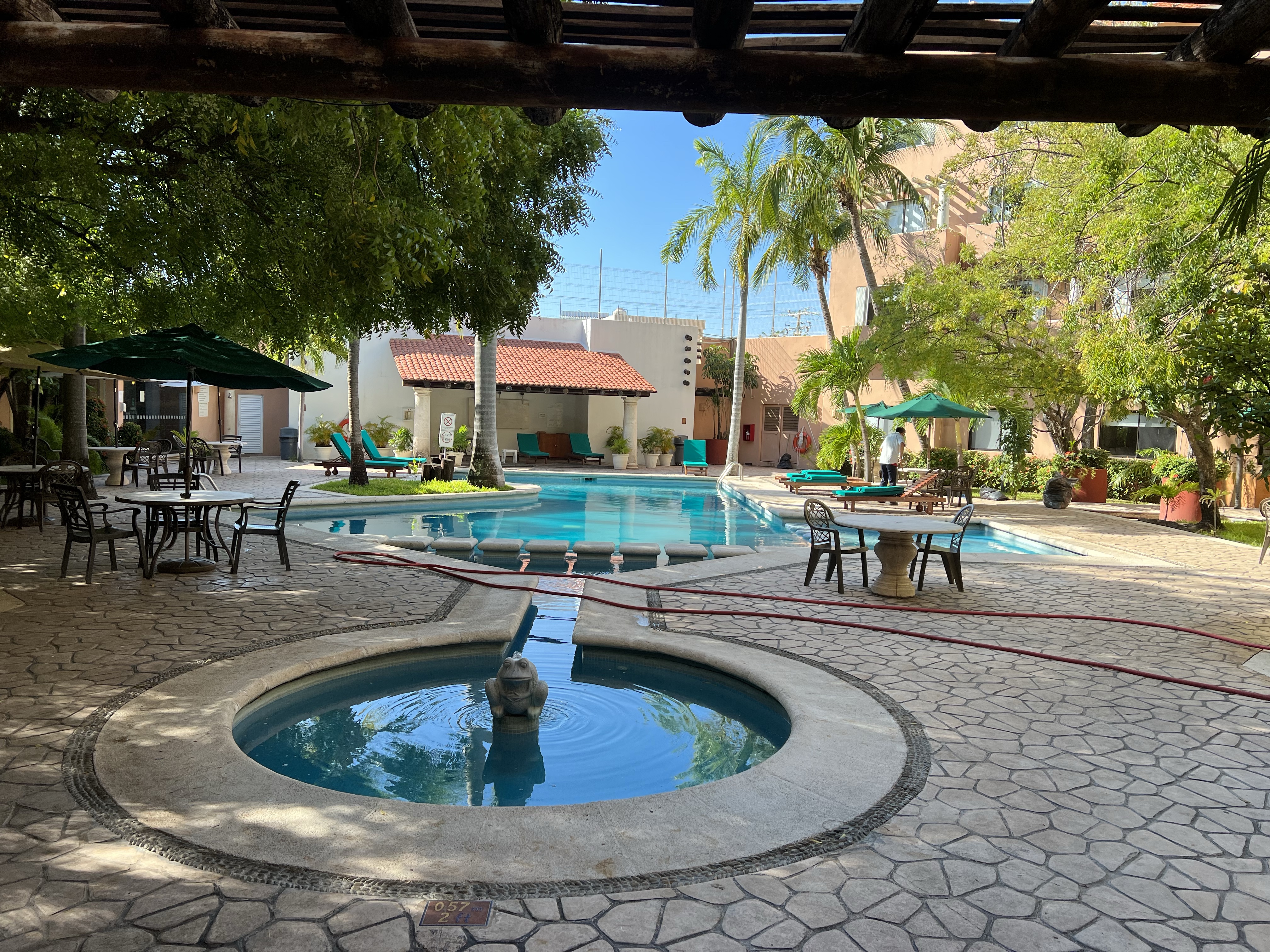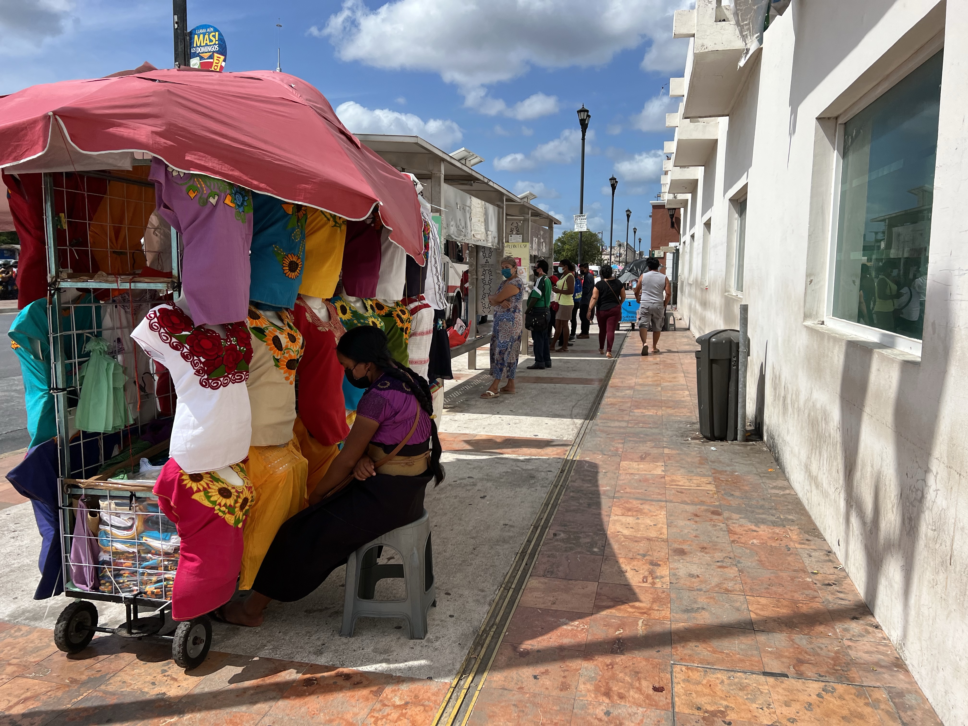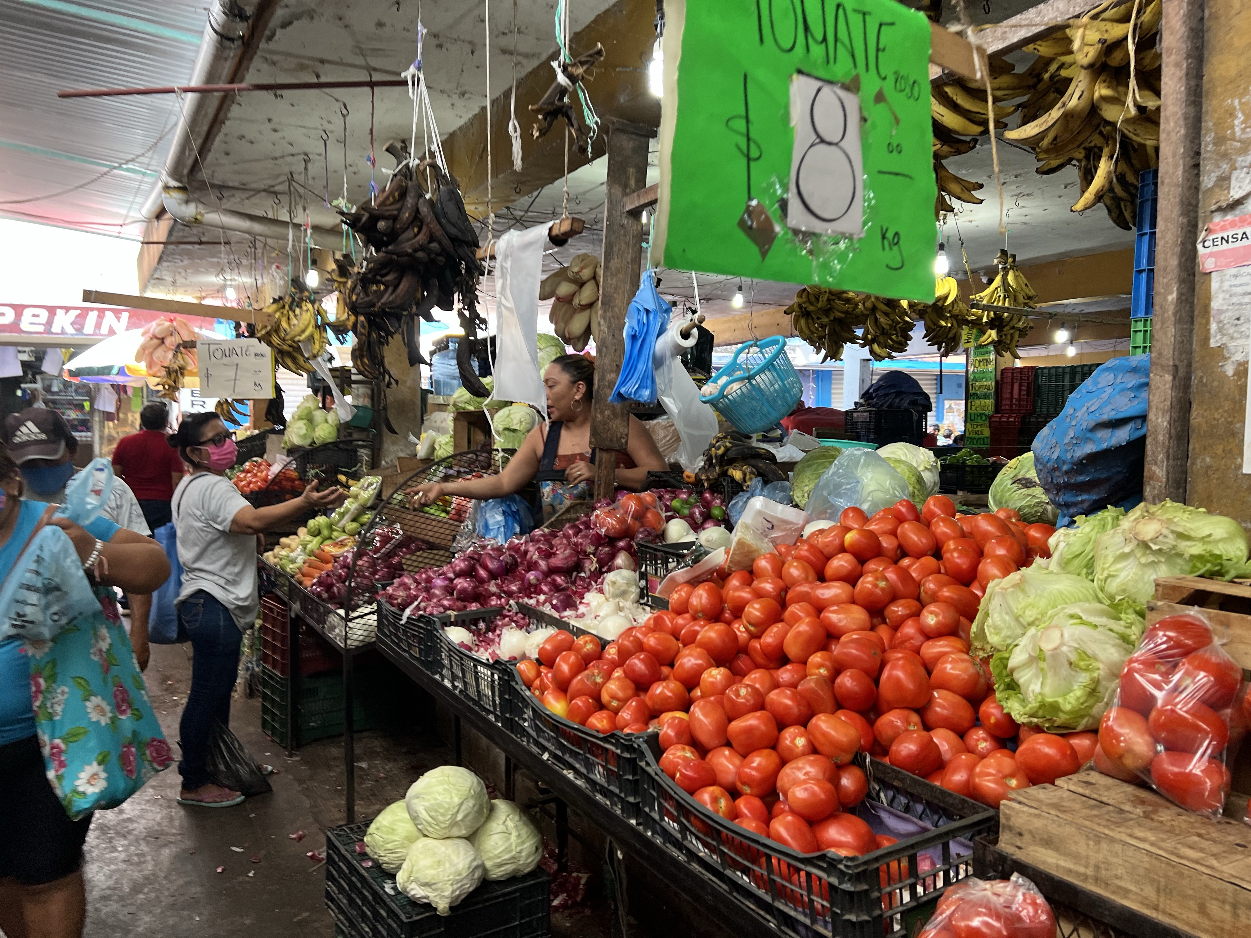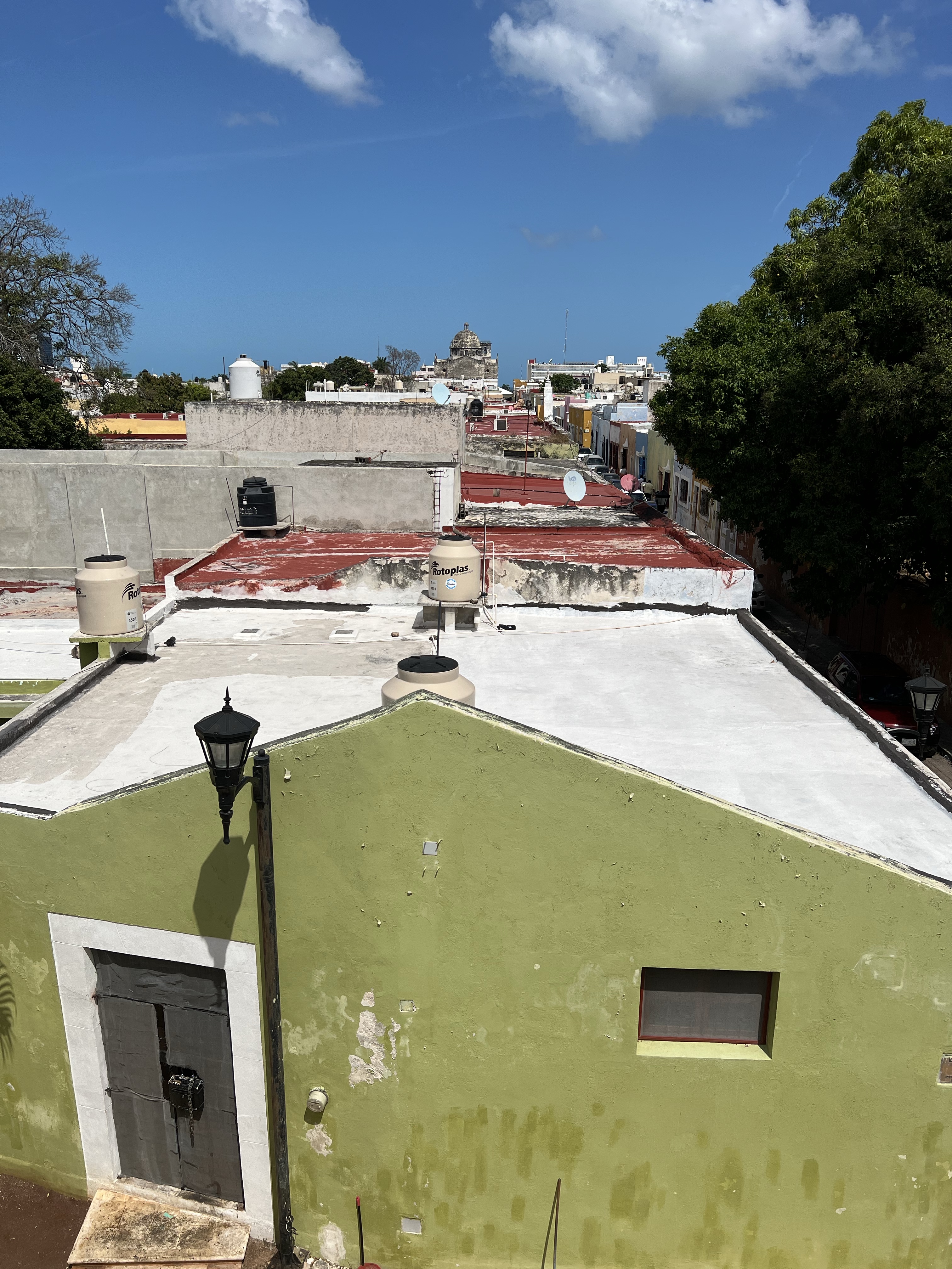 En dan is het zondag. Met behulp van Harriet kan R Max bekijken. Wat blijkt in het hotel, bij het ontbijt, staat gewoon Max aan. En ook op onze kamer kunnen we het bekijken. Echt dolle pret. Na het ontbijt trek ik de stad in. R gaat uiteraard kijken. We spreken af om elkaar over een paar uur te treffen bij een cafeetje. Ik loop “buiten om” de stad door. Campeche heeft ook een centraal plein, diverse kerken en heel veel gekleurde huizen. De binnenstad is ommuurd. Dus ik loop eigenlijk om de muur heen. Naar Puerte de Tierra. Maar ik beland eerst op de markt. Waar het ondanks dat het zondag is heerlijk druk is. Sommige kraampjes zijn dicht maar de meesten zijn open. Ik loop van kleding, door het vlees, naar de groente, de bloemen, de vis en de kip. Diverse geuren en kleuren komen je tegemoet. Heerlijk om hier te lopen. En te kijken! Dan loop ik verder om bij de puerta de Tierra. Op sommige avonden is dit verlicht. Maar goed, het blijkt dat je op de muur kan lopen. Ik koop een kaartje en kijk uit over de stad. Zo valt mij op dat de muren er straks bij staan van de gekleurde huisjes. Maar bij sommigen is het alleen maar de muur. En is er voor de rest niks. Dan kijk ik op de klok (inmiddels krijg ik appjes van het thuisfront dat t niet goed met Max ging. Tja ik weet van niks want ik dwaal door de stad. Maar goed ik keek dus op de klok en de tijd gaat sneller dan ik dacht. Even bellen met R om onze afspraak iets later te zetten. Kan ie ook nog even bekomen van de deceptie. Blijkt ook nog het cafeetje vol te zitten. Vlug ergens anders heen. En toen maar weer plonsen in het zwembad. ‘S avonds naar de chinees. We laten ons afzetten door een taxi. Nou ja. Ik heb google maps aan want de chauffeur weet niet waar hij heen moet. Het is helemaal niks. Vlug weer een taxi in. En weer naar calle 59. We belanden bij een cafeetje waarvan de bediende het nog moet leren. Het is hilarisch. Ze krijgt 2 buitenlanders voor haar neus en ze heeft geen idee wat ze moet doen. Van schrik krijgt ze zelfs het bierflesje niet open. Na een hapje is de dag alweer ten einde. Morgen naar Ciudad del Carmen.