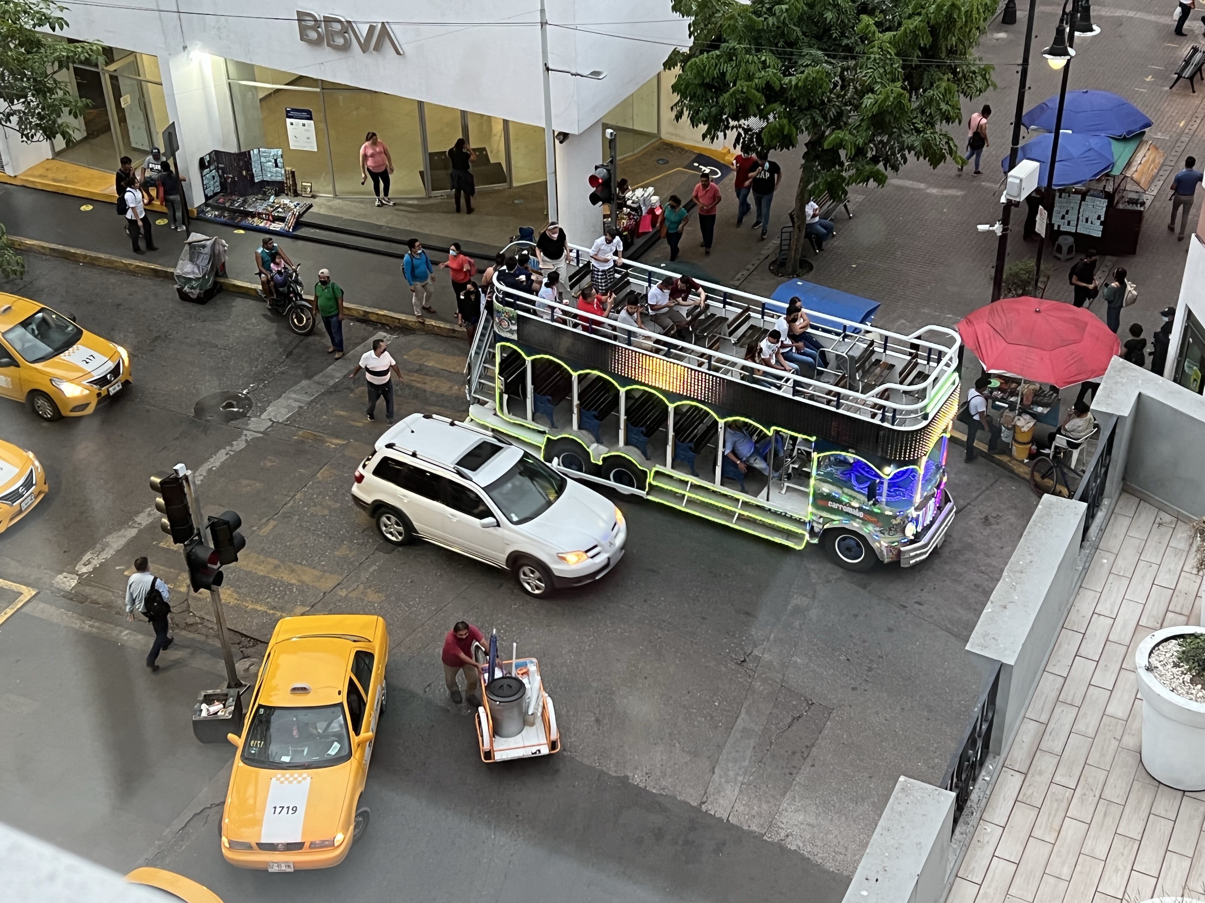 Eigenlijk hebben we niet veel in Ciudad gedaan behalve van het weer genoten. Stralende zon en 37 graden. Wie doet ons wat. We hebben nog op de Malecón (boulevard) gelopen. Een kleine 5 km. Deze was afwisselender met meer keuze van cafe/restaurant onderweg. Met de taxi heen en terug. Dat kost hier niks. En dan, ja wat vervelend weer, bij het zwembad liggen (bakken). ‘S avonds gaan we bij vaquero een mexicaans restaurant. We hadden torta (nee geen taart maar brood) en een gringa. Prima. Lekker! En op loopafstand.