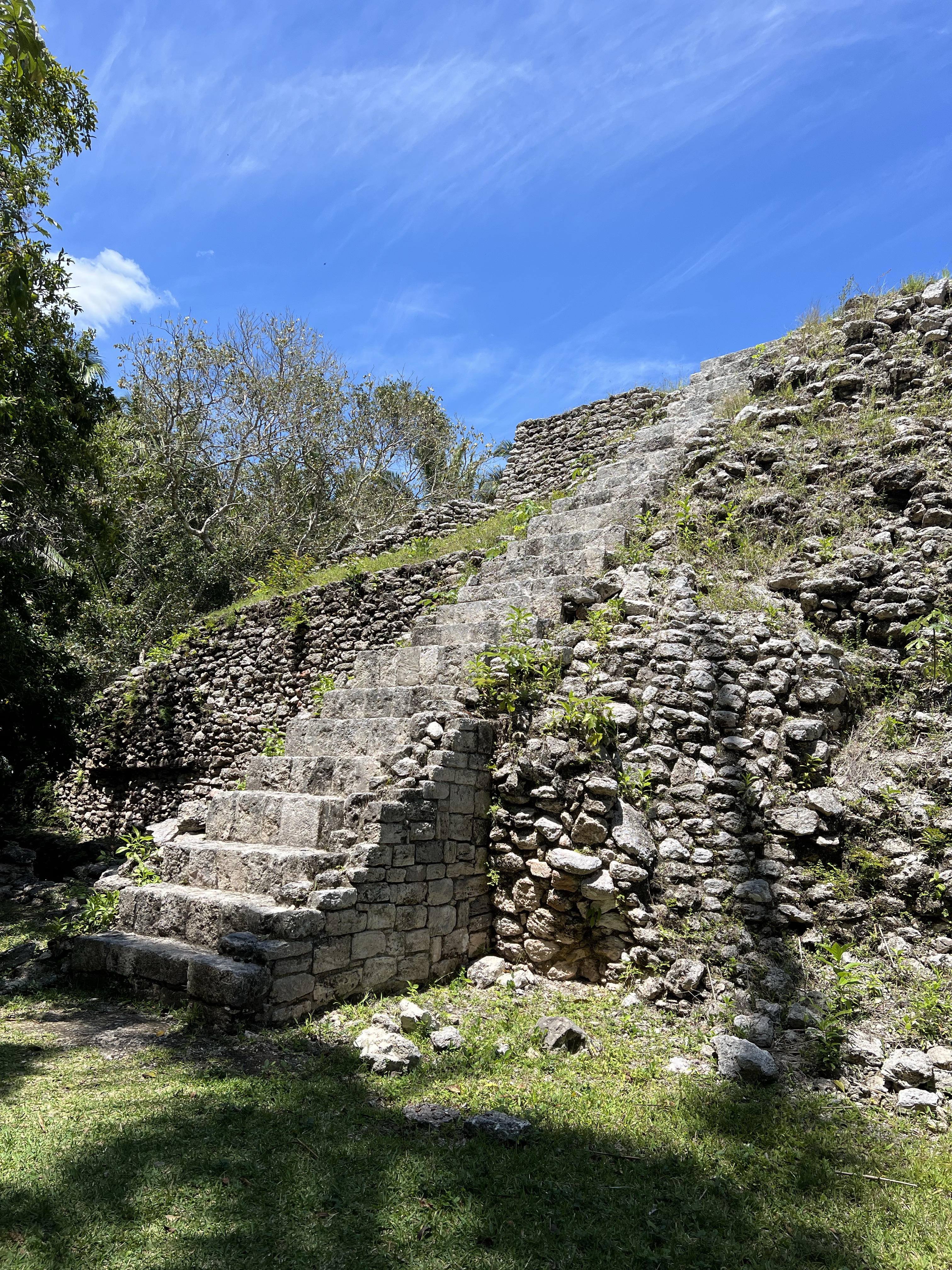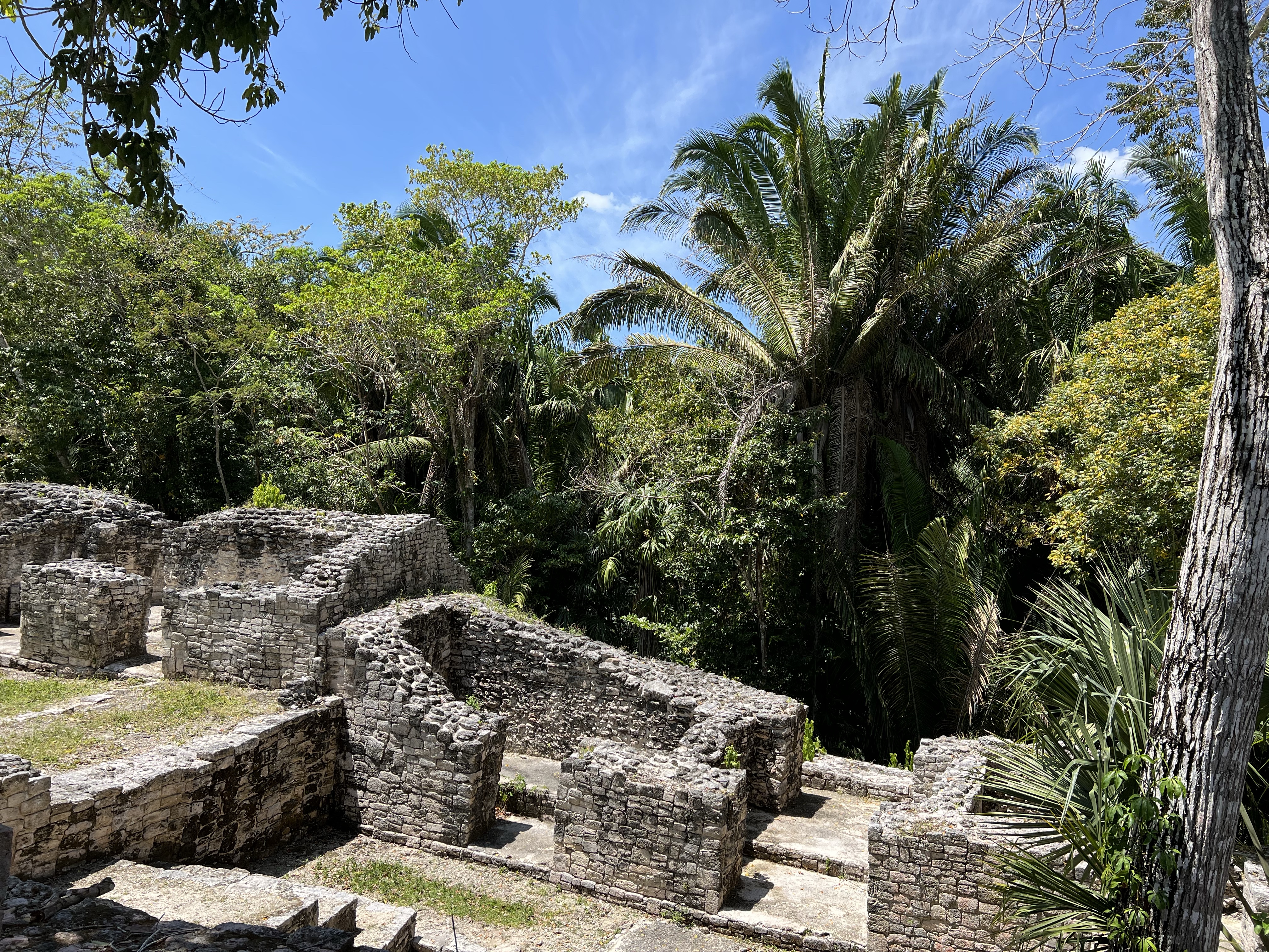 Ik heb weer helemaal genoten. Het was wel anders dan de vorige keer. Misschien ook wel door de hoge verwachtingen en dat de omstandigheden heel anders waren. De vorige keer was het aan het eind van de dag. Wat donker in mijn beleving. Het had immers geregend. En er was niemad. Dus een beetje spooky. Het was net over Mayas uit het oerwoud konden komen. Dat was nu niet zo. De zon scheen, er liepen andere mensen maar de ruïnes vond ik top. Kortom ik heb er heerlijk gewandeld en genoten van de stenen, de palmen en liep even in mijn eigen wereldje. Dan weer terug naar Chetumal en, hoe kan het anders, weer zwemmen.