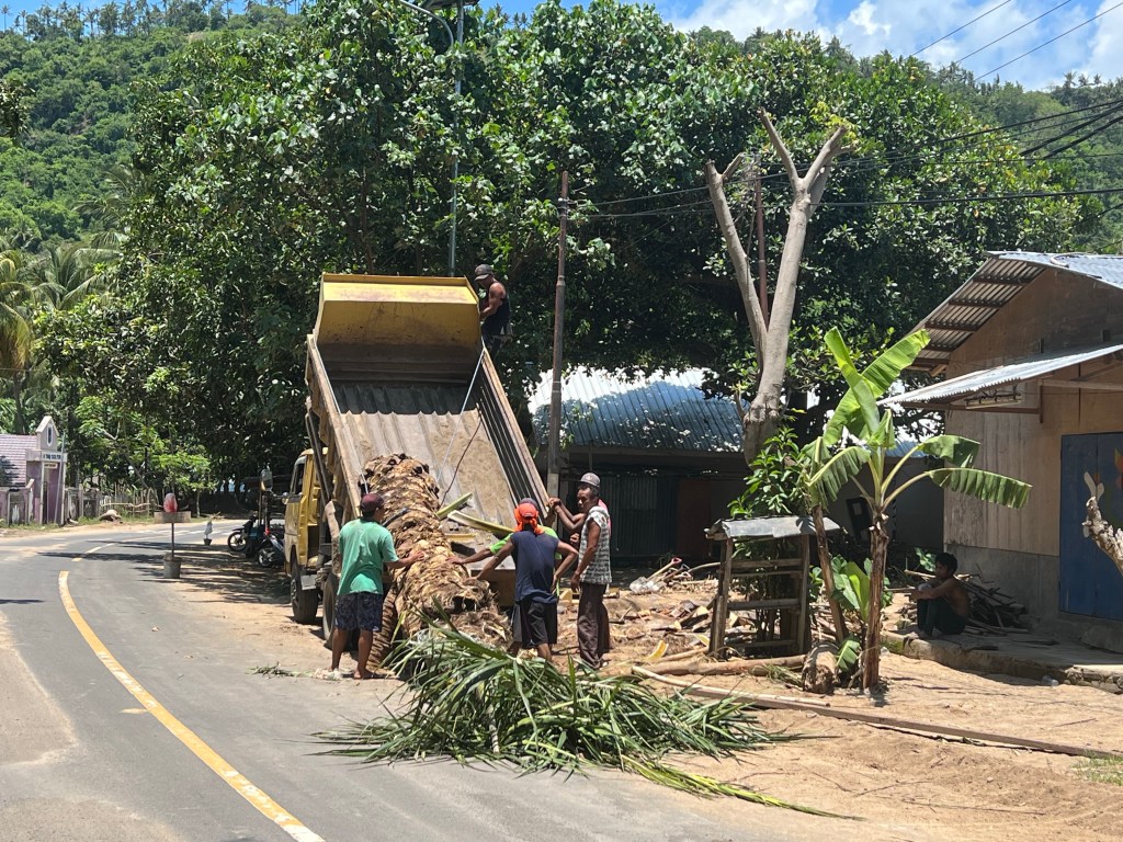 Maandag. We gaan scooters huren. Maar waar zijn de bedrijven? Omdat er zoveel bedrijven failliet zijn, is t lastig zoeken. Soms is er nog wel een gelikte website maar in t echie is het er niet meer. We vinden er toch een, hier om de hoek bij t hotel. M loopt alvast die kant op. We vinden iemand die een winkel in van alles heeft en daarnaast allerlei toeristische informatie heeft en scooters. Na enig onderhandelen stappen we nog geen half uur later op de scooter. En joh wat is dat fijn. We rijden richting het noorden. We hebben prachtig uitzicht op de zee. Het is heuvelachtig. Dus zo nu en dan het gas flink los en dan omhoog zoeven. We rijden door dorpjes. Je komt ogen en oren te kort. Zo steekt er een koe over. Heb je een kip in je kuiten en een aap rent snel weg. Het is volop genieten. Palmbossen. Heel veel groen. En heel veel geluiden. Vooral de krekels zetten zo nu en dan hard in en laten een heel concert horen. Het is zoooo genieten. We krijgen er wel dorst van. Drank is hier lastig te krijgen. 90% is moslim. Maar omdat ze zeer behulpzaam zijn krijgen we al snel een tip en daar gaan we heen. Trouwens ze stoppen zo voor je om te helpen. M wist niet hoe ze de buddyseat omhoog kreeg. Gelijk stoppen er een paar jongemannen die helpen. Echt heel aardig.