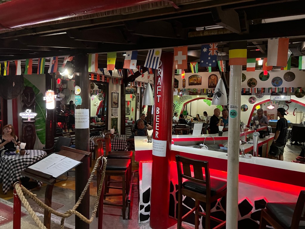 Zondag nemen we t vliegtuig naar Lombok. Twee kleine koffertjes en een rugzak. Het inchecken duurt even want er zijn nogal wat mensen die teveel hebben meegenomen en dus bij moeten betalen. Wij zijn aan de beurt en willen ook wat veranderen. R had geregeld dat we de voorste stoelen hebben. Maarrrrr hier ga je achterin het vliegtuig in. We konden de stoelen nog wijzigen. Dat lukte online niet. We zitten helemaal achterin. R vraagt of hij aan de andere kant mag zitten. Zo hebben we wat ruimte. Want de beenruimte is ok. Maar de stoelen zijn wat smal. Daarnaast is alles heel laag. Dus t komt wat beklemmend over. We hebben een prachtige vlucht. Zon en wolken. Prachtig overzicht van Bali en lombok. Bij aankomst nergens de chauffeur te vinden. Die, zo bleek later, was ons vergeten. Direct allemaal mannetjes om ons heen. Eentje daarvan bracht ons naar t hotel. Hotel Aruna Resort in Senggigi. Niks mis mee. De bedden wat hard. In Azië is het altijd een verrassing hoe het bed zal zijn. Het gaat van plank tot aan zeer zacht. Rond drie uur lagen we in t zwembad. Alleen. ‘S avonds de hort op. Maar geen bruisend uitgaansleven. We gaan naar honky tonky. Het is er rustig. Het zou in een straatje liggen met allemaal leuke tentjes. Maar veel bedrijven zijn failliet door de covid. Als wij weggaan zit er niemand meer. Toch gezellige avond gehad. Leuk gekletst met Australiërs.