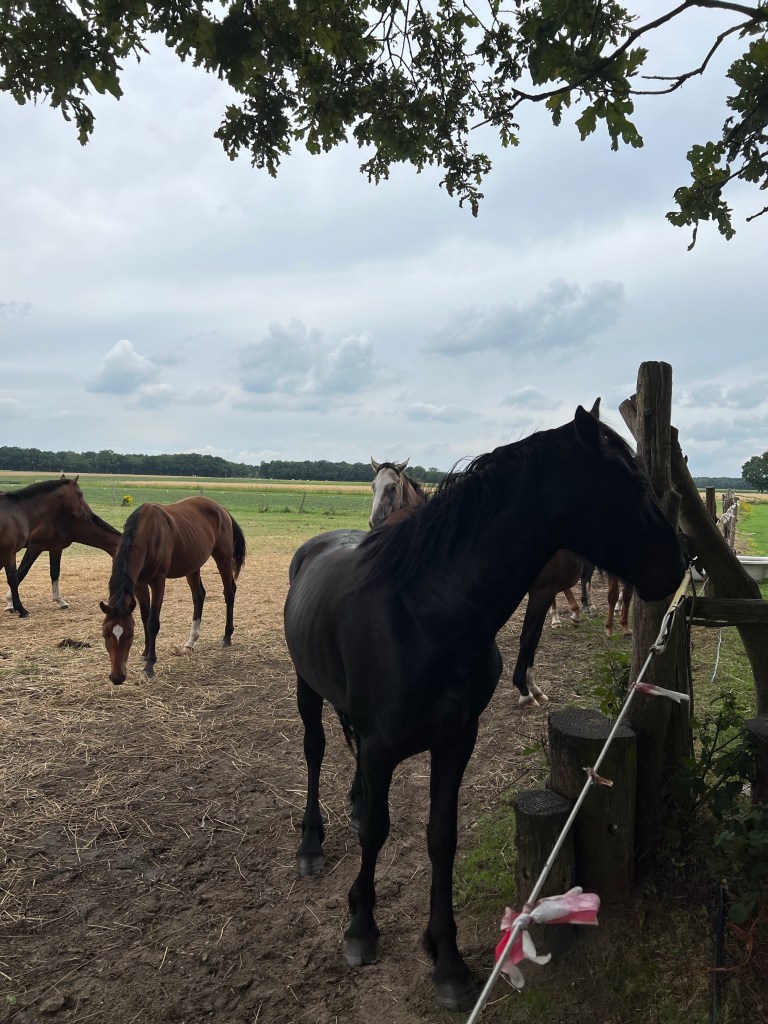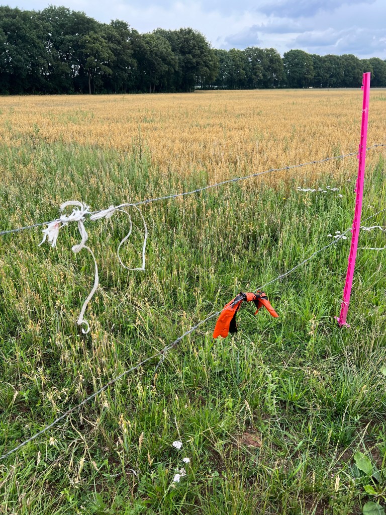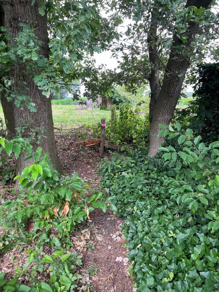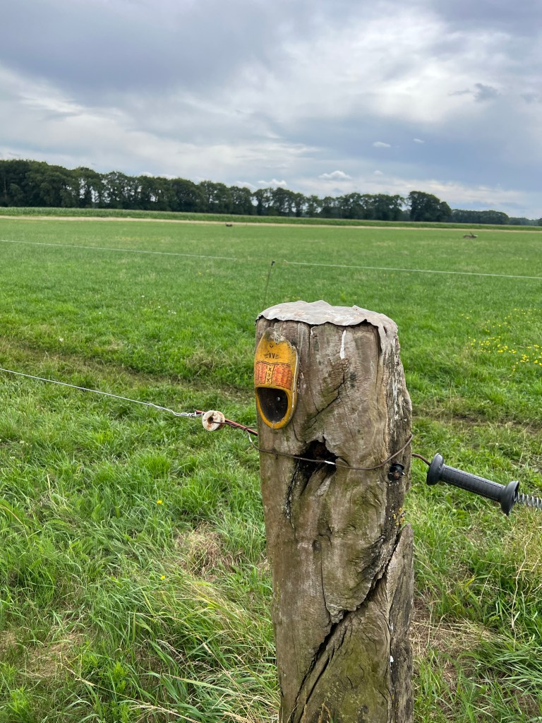 We zijn niet meer de jongsten en onze stramme botten worden soms op de proef gesteld. En dan gaat het mis. Of het nu komt dat we afgeleid worden door een groep paarden die gezellig een stukje meelopen, het boerenlandschap geen idee. Maar op een gegeven moment liggen we op onze knieën om zeer elegant (NOT) onder het prikkeldraad te komen. De haken zitten net niet in ons achterwerk 😊. We zijn de bordjes kwijt. De app biedt uitkomst. We besluiten iets om te lopen. Want we moeten of door het weiland met de paarden en dat zien we niet zitten. Trouwens ook niet om weer acrobatische toeren uit te halen om onder het prikkeldraad te komen. Dus met een flinke wandelpas lopen verder om de route weer op te pikken.