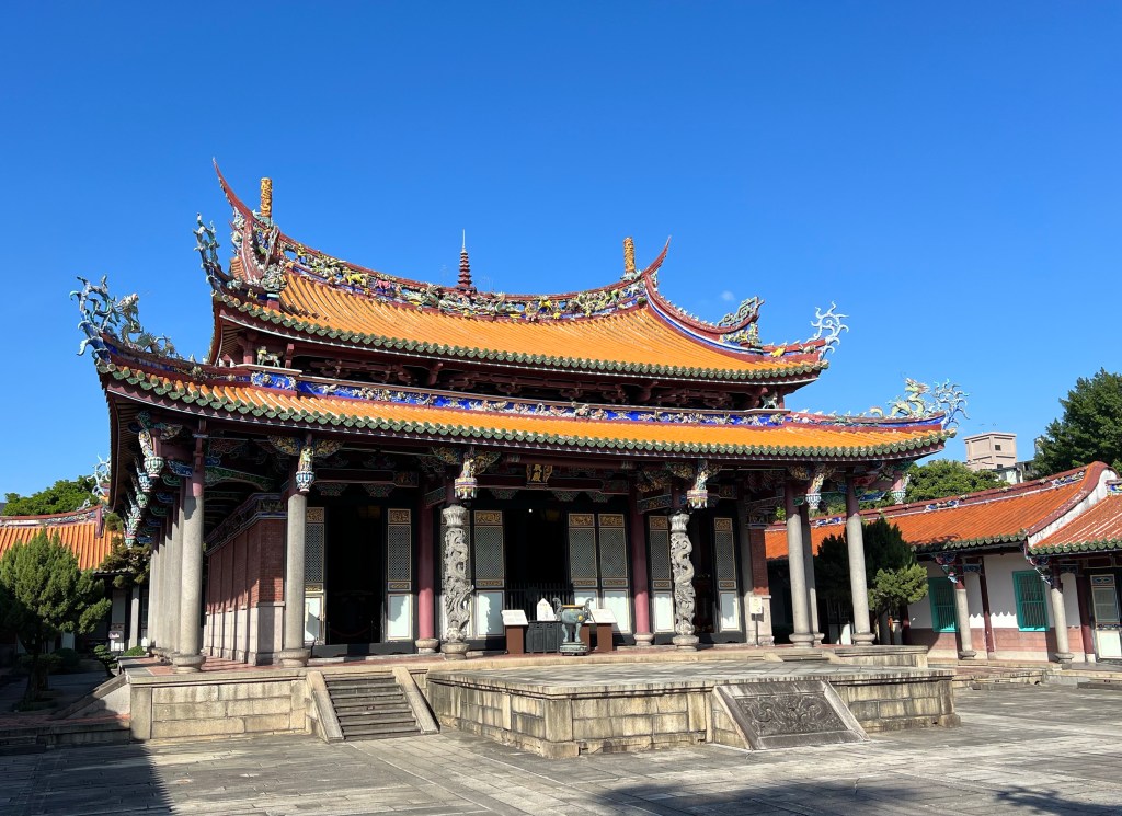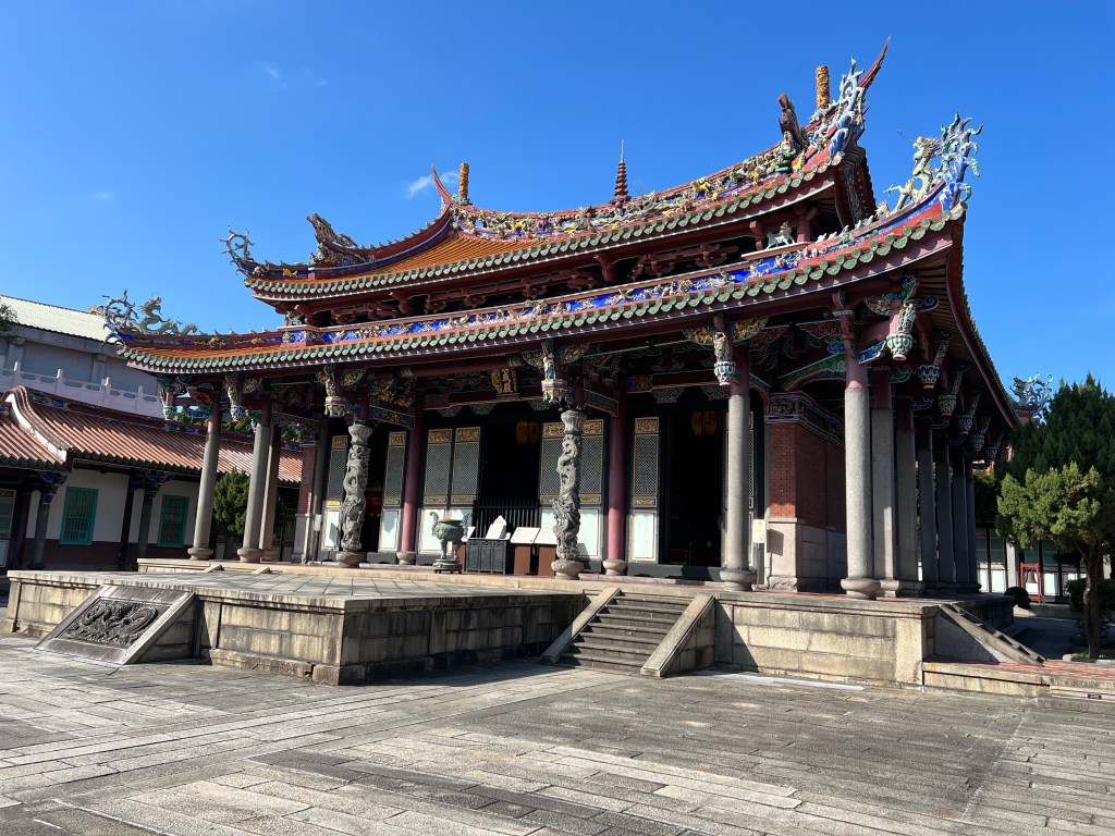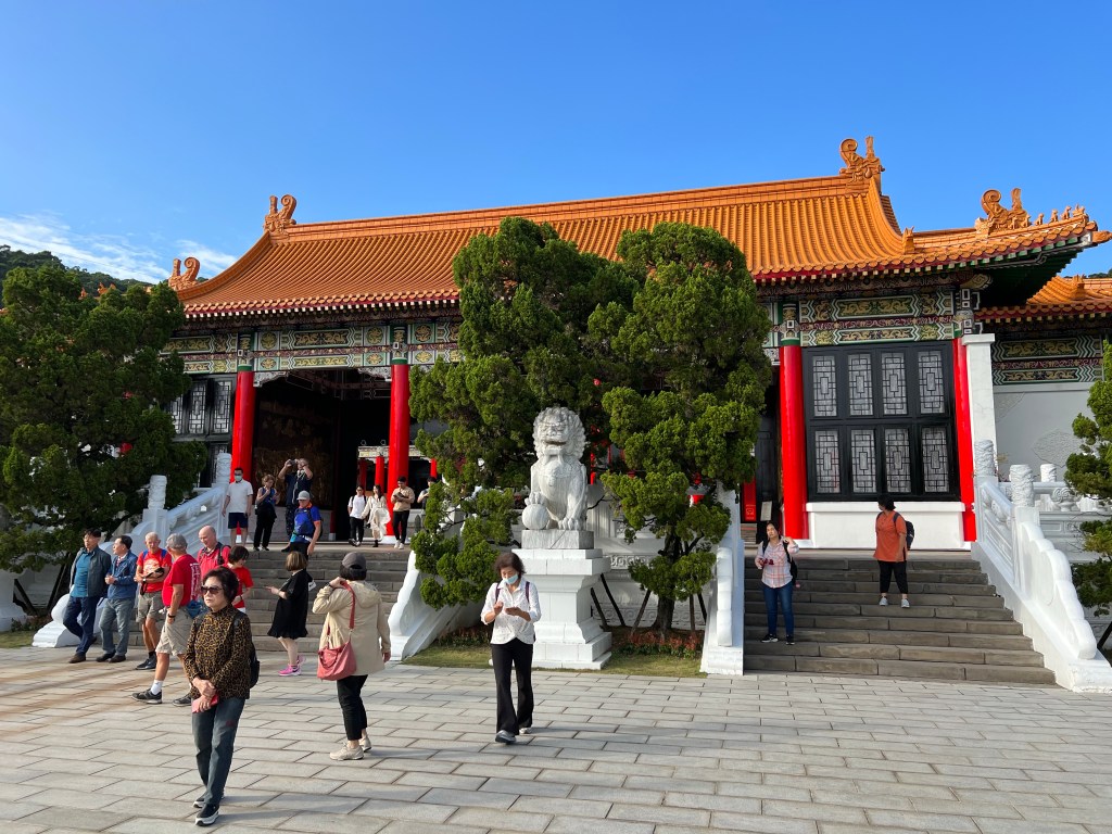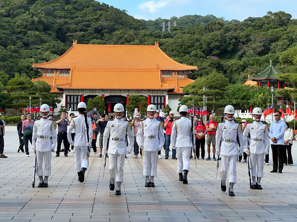 De confusius tempel nemen we gelijk ook even mee. Deze is veel soberder. Wel erg belangrijk. Dit is de oudste van Taiwan. We racen naar het Grand Hotel. Ik moet eerlijk bekennen dat we dat in een vogelvlucht hebben gedaan. Een draak op de foto gezet. En weer door naar alweer de laatste stop. National Revolutionary Martyrs’ Shrine. En ook daar is net de wisseling van de wacht. De brutale toeristen staan bijna op m’n tenen en duwen me weg om de beste plaatjes te schieten. Daar heb ik wat van gezegd. Pff. Hehe