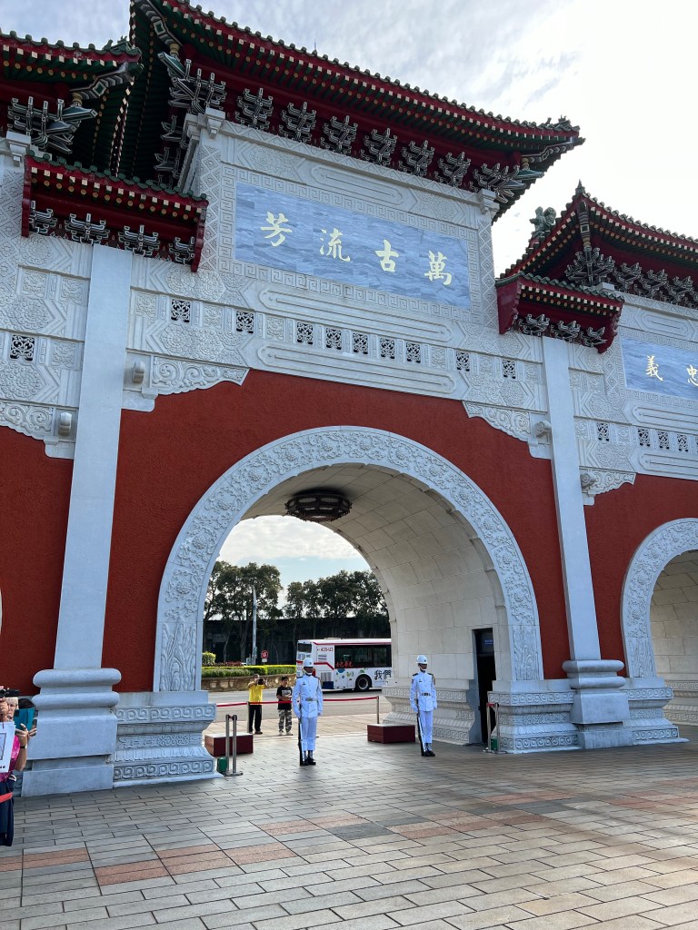 Om half elf worden we opgehaald. Voordat we wegrijden heeft Bruce een heel verhaal over fort Antonio. Dit is ooit door Nederlanders gebouwd. Lang verhaal kort. We zijn gewoon in Taipei gebleven. Op naar Chiang Kei-Shek memorial Hall. Een immense ruimte met verschillende poorten.