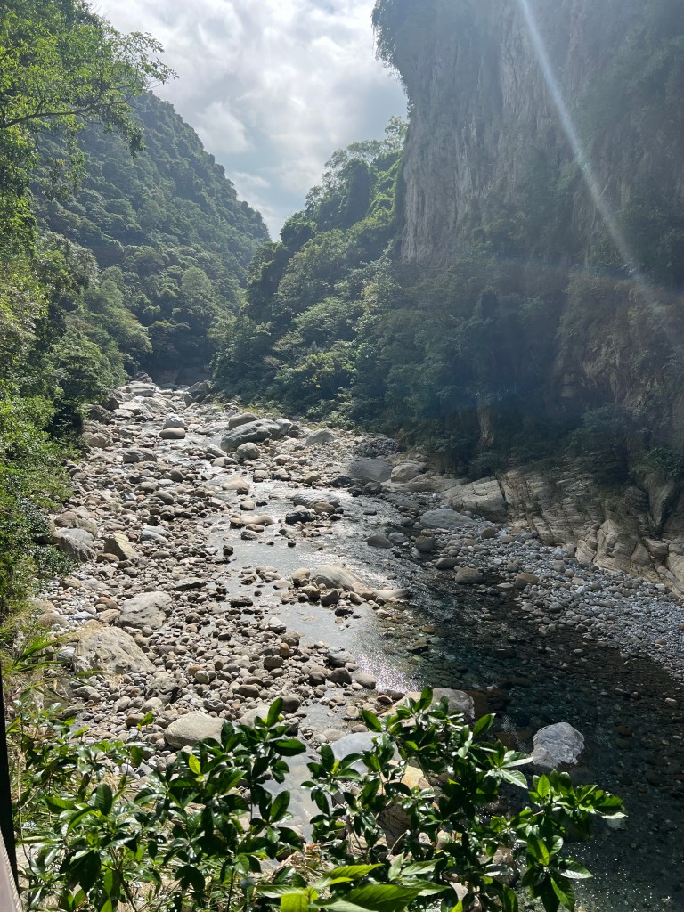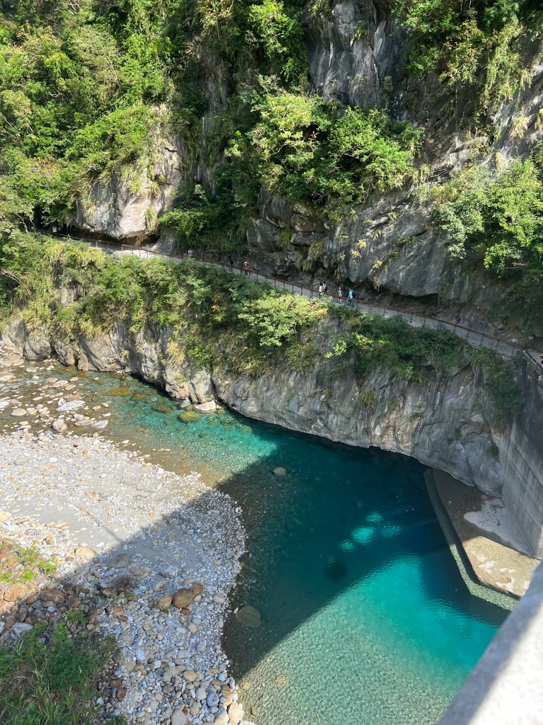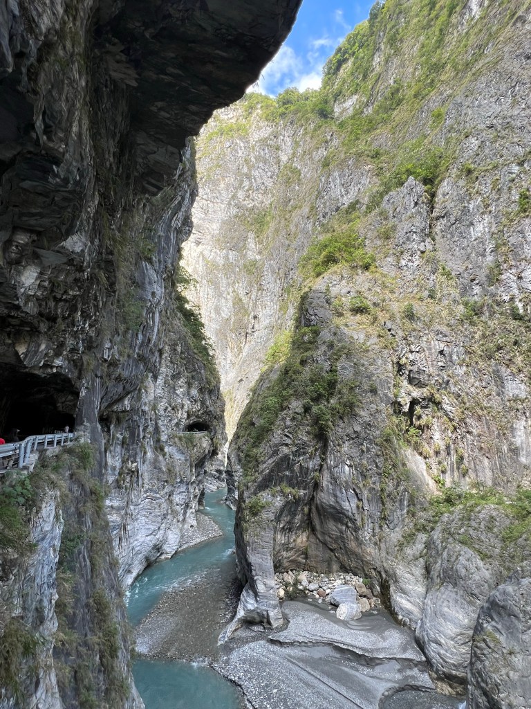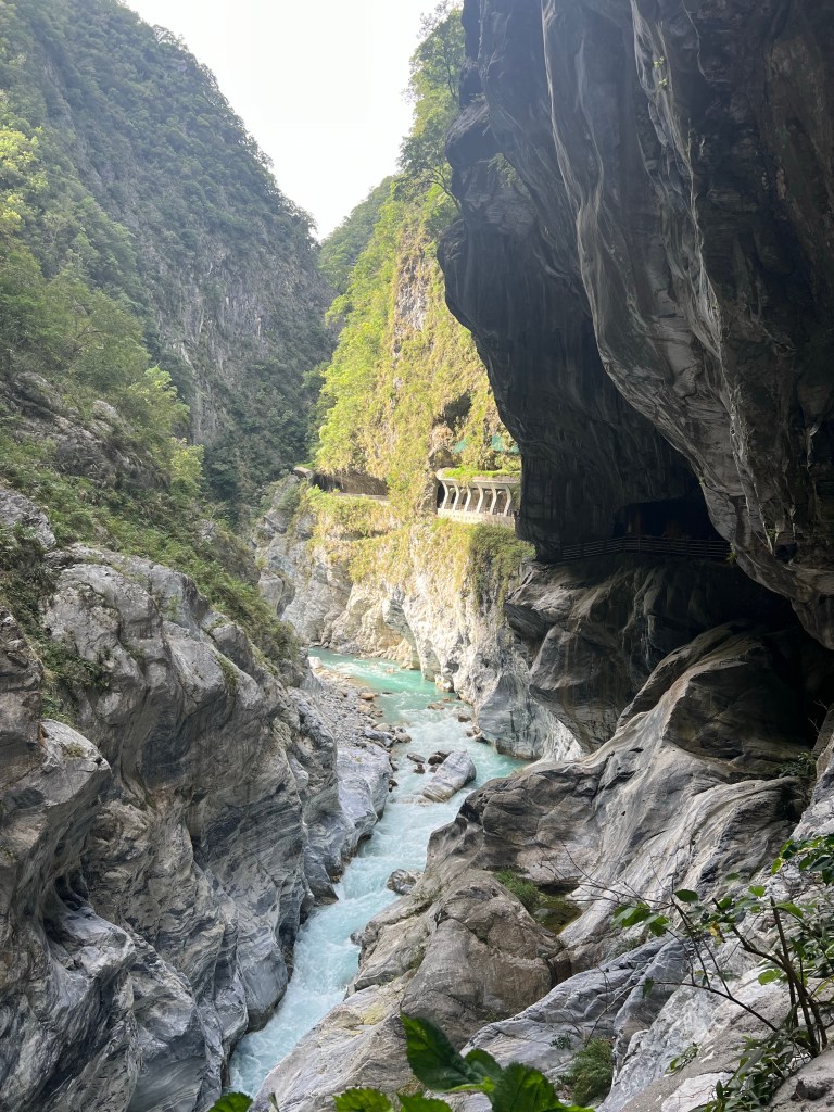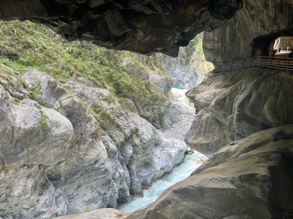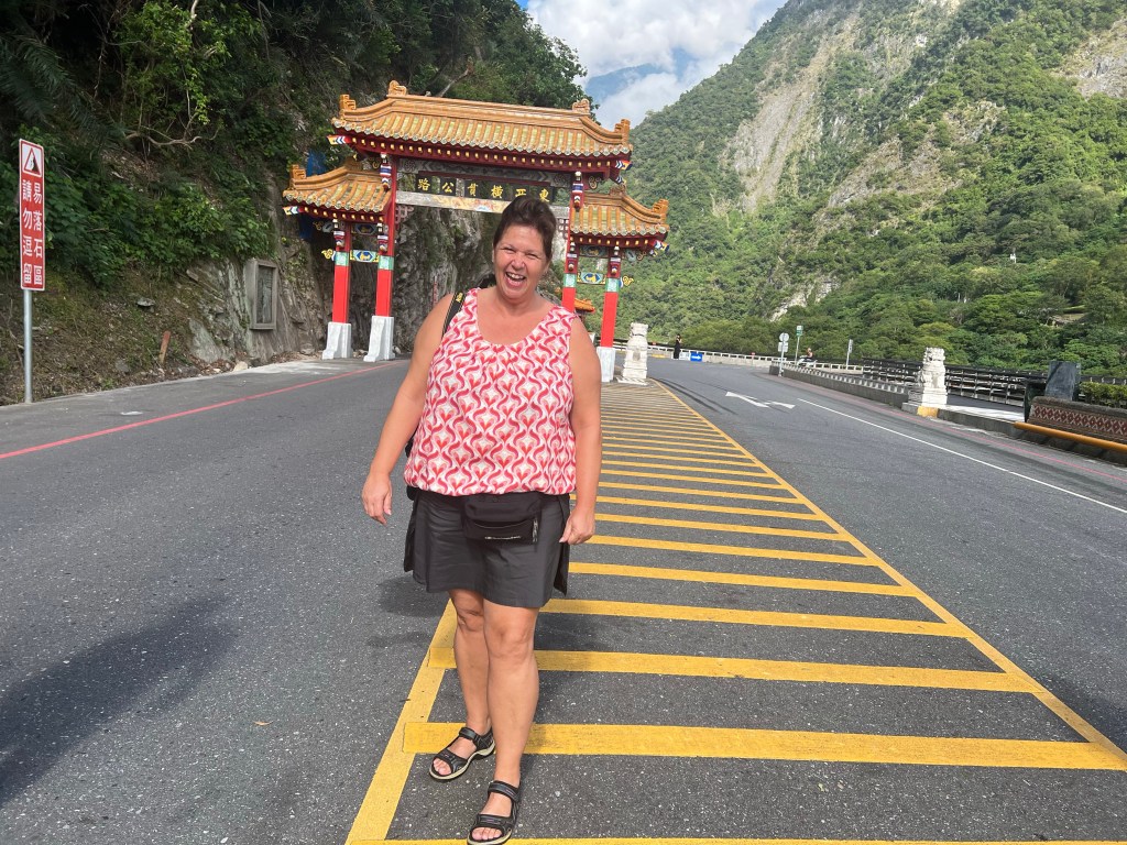 Het Taroko Gorge National Park begint vanaf de Archway of Taroko Gorge, die niet alleen een toegangspoort is tot Taroko Gorge, maar ook een mijlpaal die de toewijding van de voorgangers aan de Central Cross-Island Highway symboliseert. Wij rijden een stuk vvan de Central Cross-Island Highway, dat door de steile marmeren kliffen en tunnels van de kloof slingert. Dan lopen we een stuk van de Shakadang Trail.