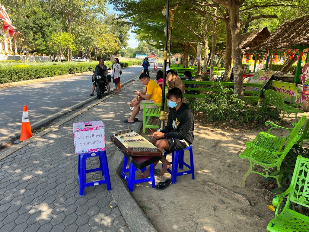 Straks weer scooteren. Nu richting het noorden. Oortjes in. Telefoon op t stuur en karren maar. We rijden rustig maar gestaag door. Totdat ik opeens wat slipte. Huh. Voorzichtig verder. Nee het is echt niet goed. Achterband lek. En nu dan. We zien aan de overkant een 7/11. (Winkel). Voorzichtig doorheen (was wel aardig druk verkeer). Scooter geparkeerd. En bellen maar. Thais en Engels door elkaar. Waar we stonden. Tja leg dat maar eens uit. De winkel ingegaan en de telefoon aan het meisje achter de kassa gegeven. Eerst was niet duidelijk wat nu het probleem was. We moesten even wachten.
