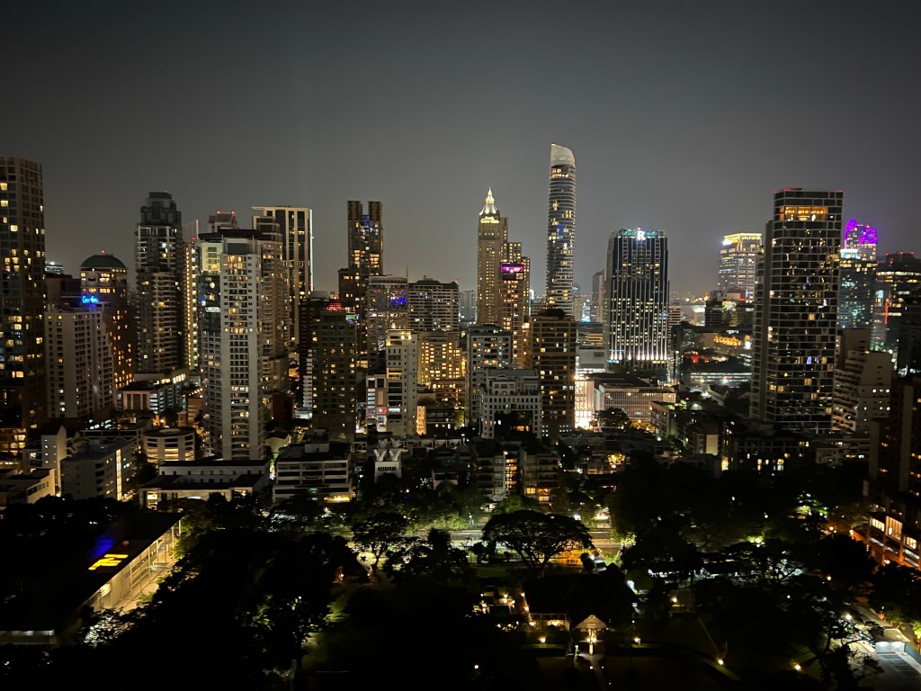Later met de grab terug naar t hotel en genieten van het heerlijke bed en het nachtelijke uitzicht.