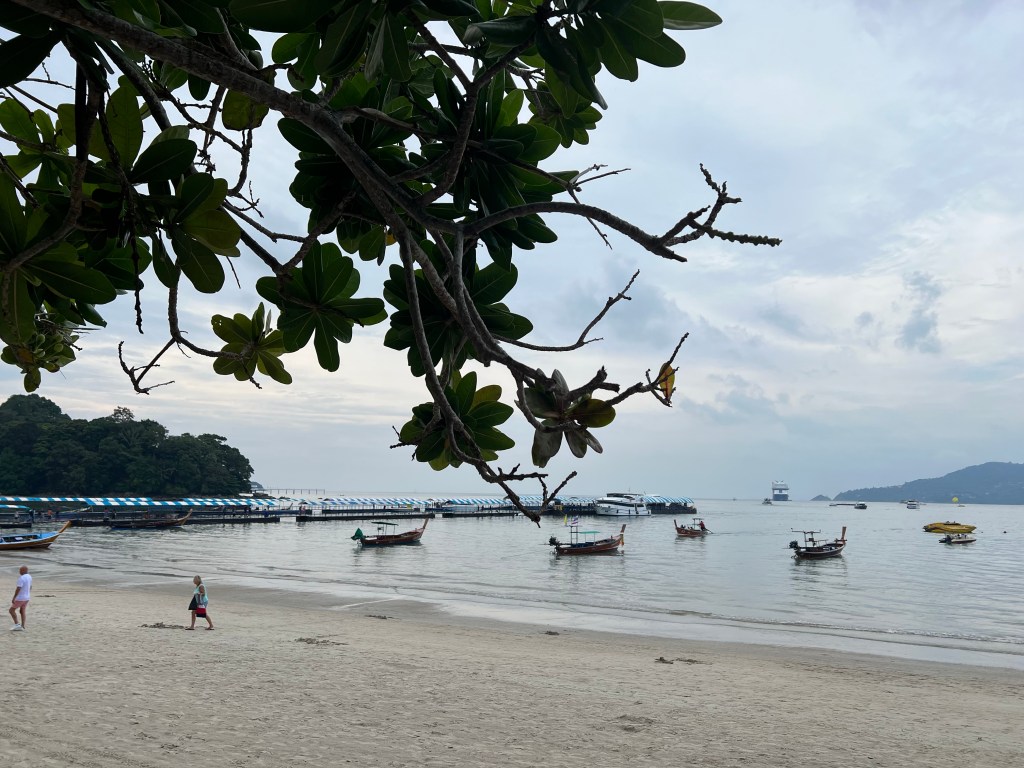 Ik geniet van de omgeving. Na een km of 30 zijn we bij Nai Thon Beach. Daar stappen we af. Dat vinden de billen ook wel even fijn. En gaan we wat drinken. We nemen bijna dezelfde route weer terug en plonsen dan in t zwembad. Helaas begint het te regenen. En het lijkt erop dat dat de komende dagen veel zal gebeuren.