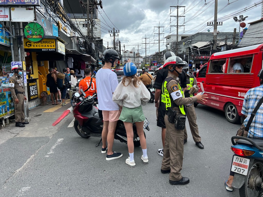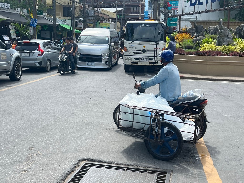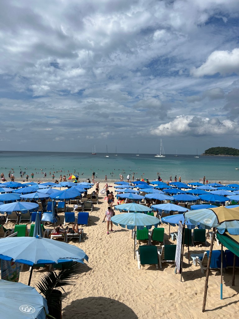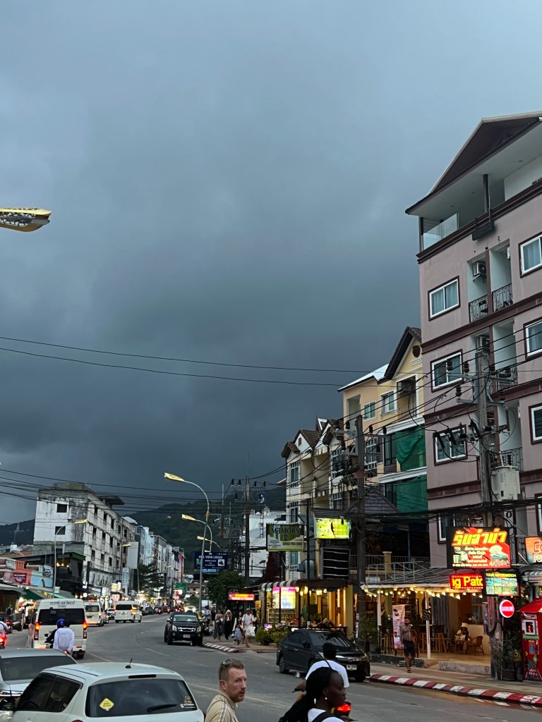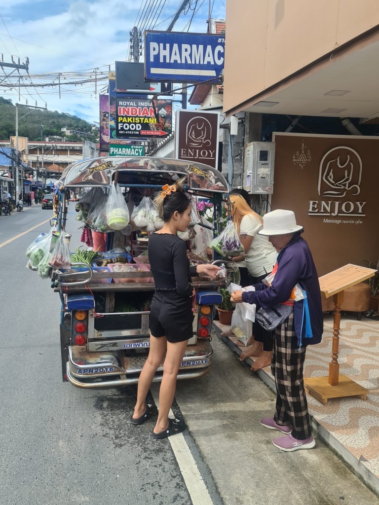 Genoten van de rit. Doel was Kamala beach. Dat vinden we een leuk plaatsje. Daar fijn aan de zee gezeten. Inmiddels had ik wat inkopen gedaan. Dat moest allemaal in de buddy sit. Lang verhaal kort. Motor van Rudy deed t niet meer. Volgens Rudy was de buddyseat Een heuvel opgelopen met de motor. Daar was een verhuurbedrijf. Misschien konden die ons helpen. Er was daar ook een plekje waar Thai zit verzamelen onder een afdakje. Voor we t wisten zaten die aan de motor en voorzagen ons van goede adviezen. Verhuurbedrijf gebeld. Die vroegen ons met klem om het lekker zelf op te lossen. Behulpzame Thai hebben ons geholpen en weer op weg gekregen. Met een bamboestok die buddyseat wat omhoog getild. Tas eruit. Sleutel gepakt en rijden maar weer. Als er niks gebeurd zou het ook wel heel erg saai zijn.