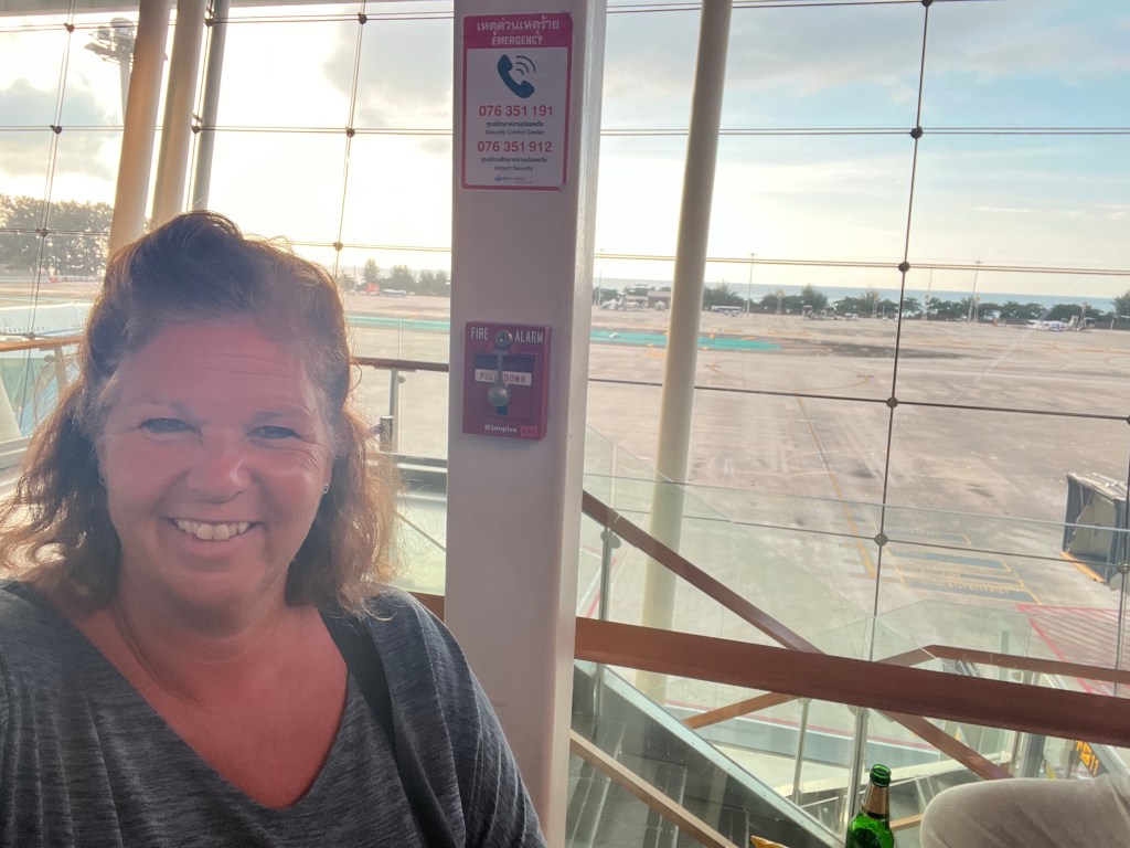 Vandaag gaan we richting huis. Maar niet voordat we nog voor de laatste keer gescooterd hebben. We genieten van de laatste zon. Drinken nog even en leveren dan de scooters in. Lekker douchen en dan wachten op de taxi die ons naar het vliegveld brengt. De chauffeur rijdt als een malle. Overal staat politie. Maar volgens de chauffeur is er niks aan de hand. Een dik uur later worden we afgeleverd. En nu zitten we dan te wachten op het vliegtuig richting Singapore. Via Changi airport nu weer thuis. En gelijk een dikke trui aangetrokken. Tis ff wennen.