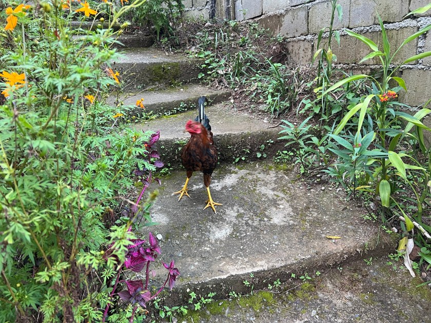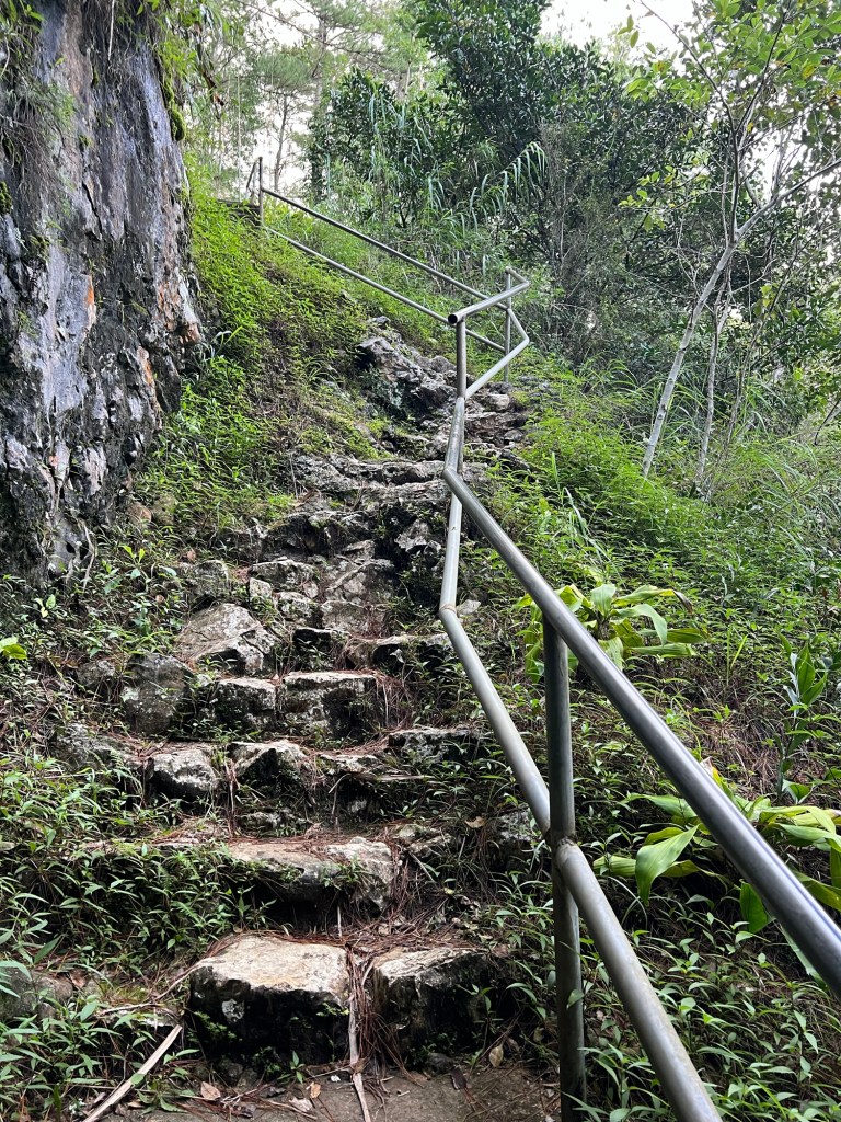 Deze dagen rijden we namelijk door de bergen. Het is genieten. De wegen zijn over het algemeen genomen aardig berijdbaar. Echter we zijn veel landverschuivingen. Dus aarde, stenen, rotsblokken liggen op de weg. Victor rijdt rustig om alles heen. Het gaat heel gemoedelijk. Take it easy. De bochten rijgen zich aan een. We maken een sanitaire stop. Het damestoilet is voor tuinkabouters 😎. Het is veelal wel schoon. Doorspoelen doe je met een emmer water. Zoals in veel landen. We moeten nog 2 uur rijden voordat we Sagada bereiken. Omdat er veel te zien is vervelen we ons niet. Veel loslopende honden. Victor vertelt dat ze hier in de bergen nog hond eten. Ze mogen niet meer op de markt verkocht worden. Ik zie varkens in een klein hok. Kippen die opgehokt zitten. Mooie kippen lopen vrij rond. Poezen zie je veel minder. Naar Sagada toe is het vrij opgeruimd, weinig rotzooi langs de kant van de weg. Ook is men overal met de weg bezig. En dan bedoel ik vegen. Maar ook aan de weg werken. De zon schijnt als we aankomen in Sagada dat ligt in het berggebied van de Mountain Province. Onderweg hebben we ze al gezien. Hangende grafkisten. De omgeving is omgeven met grotten, rijstvelden, riviertjes, watervallen en dennenbomen. We gaan gelijk starten met de excursie. Ik had me voorbereid. Ik had dichte schoenen meegenomen. Dat bleek helemaal niet nodig. Op m’n “jezus” Nikes loop ik met de gids mee. Eerst de kerk in. Hij vertelt me hoe het met de doodskisten zit. Zie hieronder. We lopen over een begraafplaats, wat nu de normale manier van begraven is geworden. Alleen oudere mensen willen nog wel eens de voorkeur hebben van het hangen aan de rots. We staan op een uitkijkpunt en zien de kisten in de verte hangen. Eigenlijk is dit de toeristische versie. Ze hangen op veel meer plekken maar dat houden ze toch liever voor henzelf. De plek waar wij heengaan is ook redelijk makkelijk bereikbaar. Op andere plekken is het een hele uitdaging met over riviertjes springen e.d. We lopen rustig naar beneden via een soort van trap. Soms van cement. Dan weer grote keien. Gelukkig is het droog. Het is maar een klein beetje slipperig.
