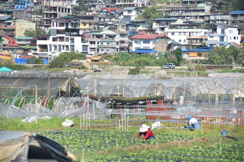 We vertrekken van Baguio en het einddoel vandaag is Sagada. Sagada is bekend om zijn doodskisten die hangen aan de bergen en die “verstopt” liggen in grotten. Voordat we er zijn rijden we eerst uren door prachtig berglandschap. We hebben er mooi weer bij. Het is echt genieten. Voordat we de stad uit zijn zien we prachtige gekleurde huizen. Dan stoppen we als eerste bij een aardbeien farm. Als we uitstappen worden we gelijk belaagd met verkopers van aardbeienijs. Het is ons nog wat te vroeg op de morgen. Het moet nog 9 uur worden. Arbeiders zijn druk aan t werk op de velden waar ook andere groenten geteeld wordt. De volgende stop is op t hoogste punt van de Filipijnse highway. Mooi uitzicht op de bergen.